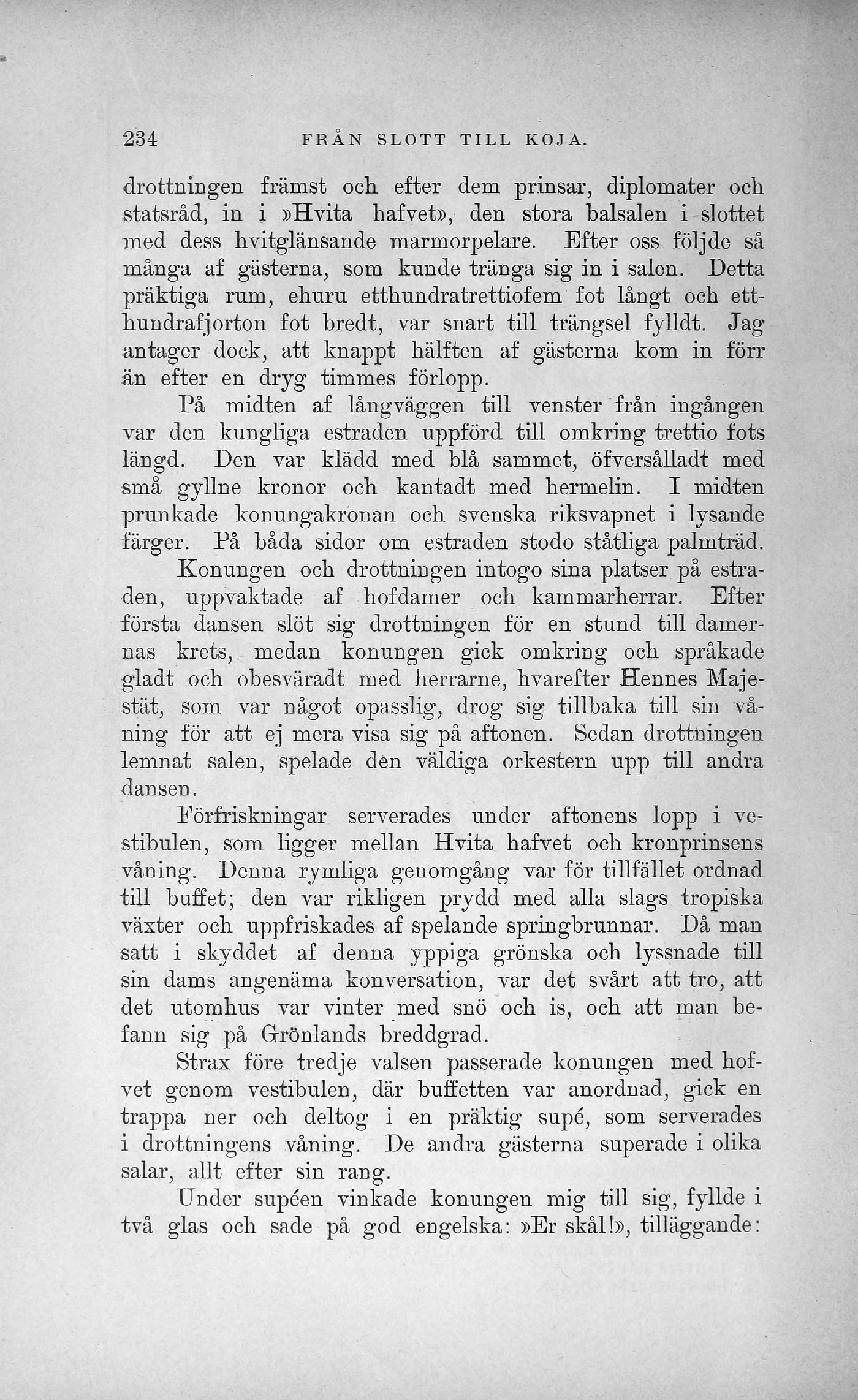 statsråd, in i »Hvita h af ve t», den stora balsalen i slottet
