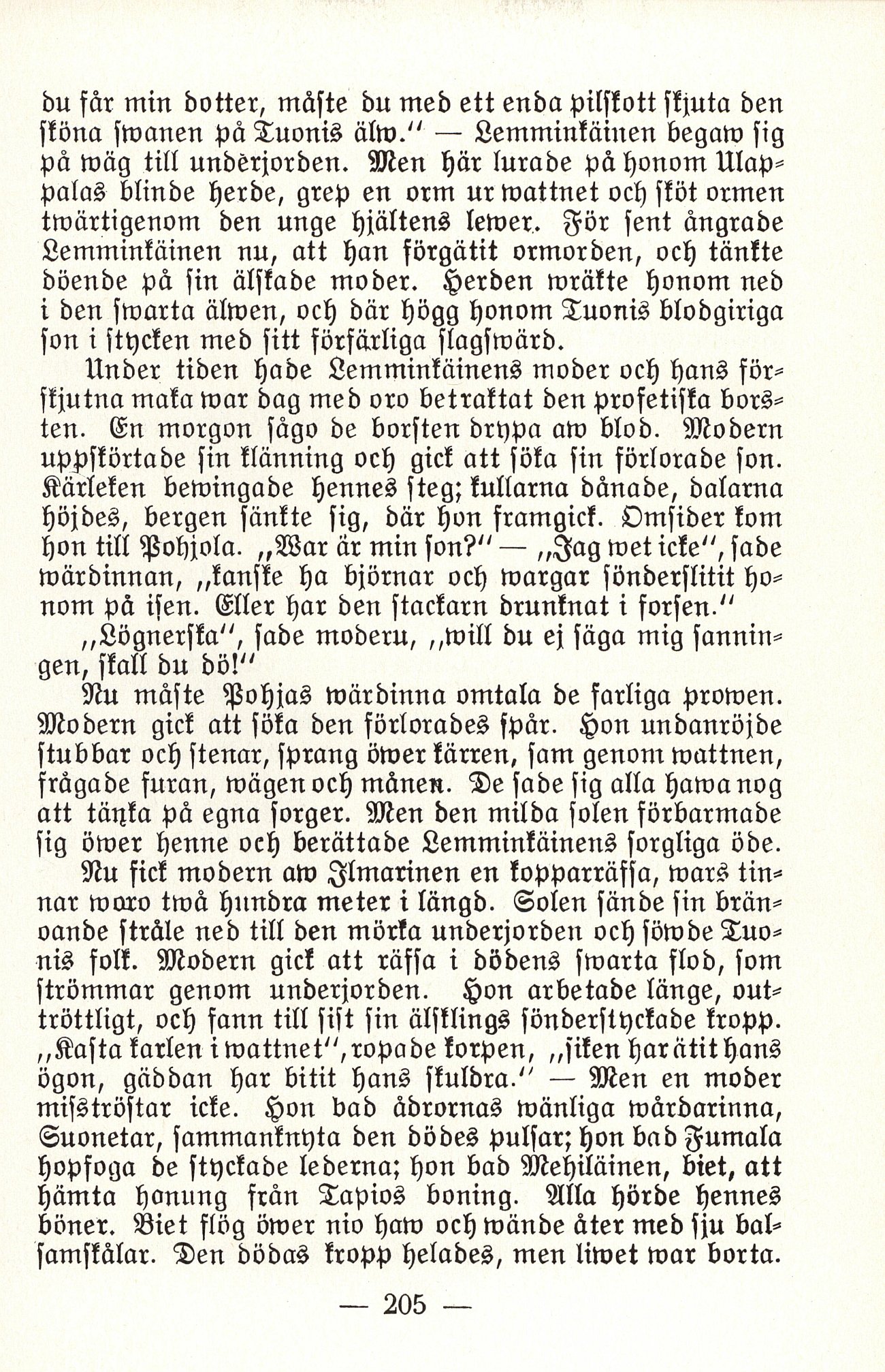 sköna swanen på Tuonis älw.” — Lemminkäinen begaw sig