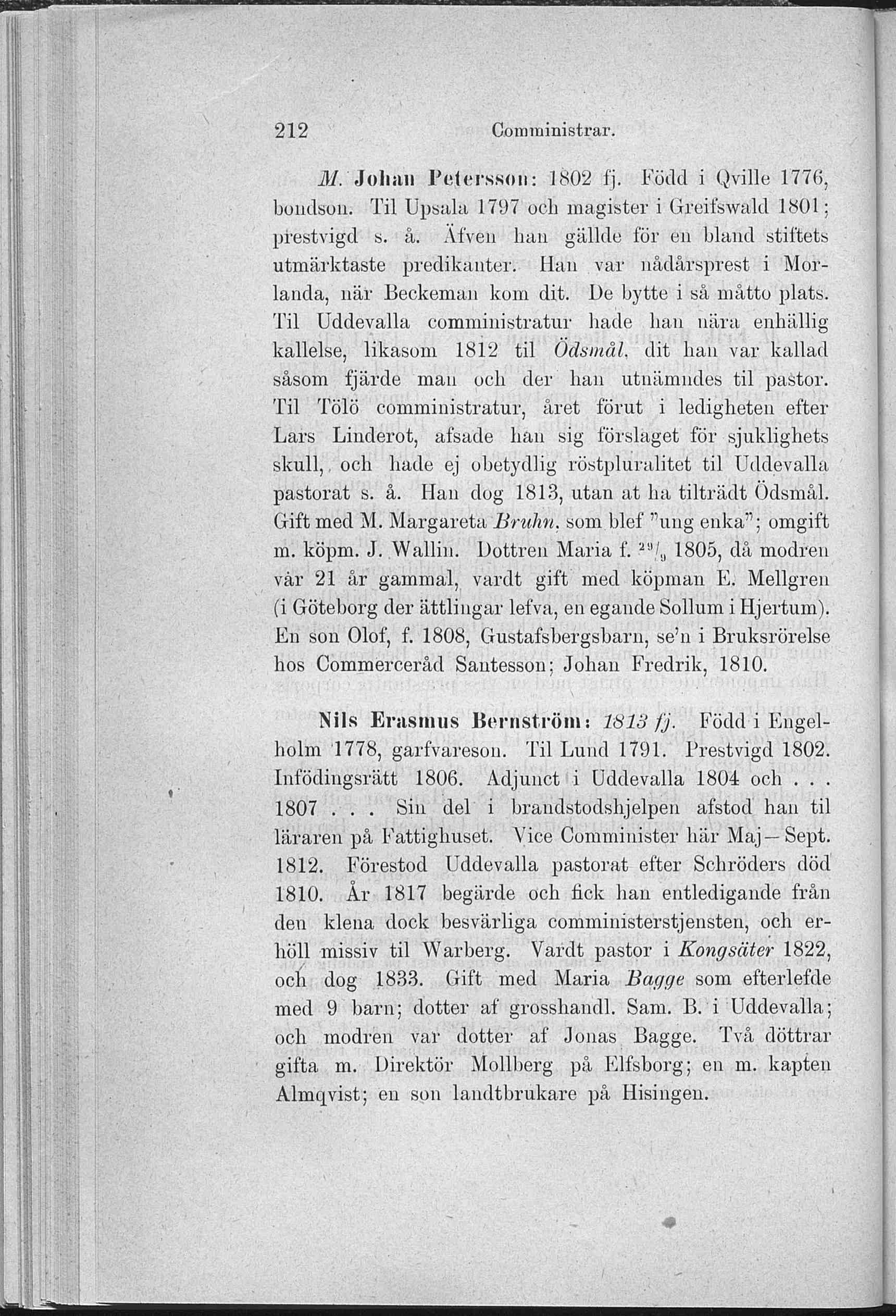 M. Johan Petersson: 1802 fj. Född i Qville 1776,