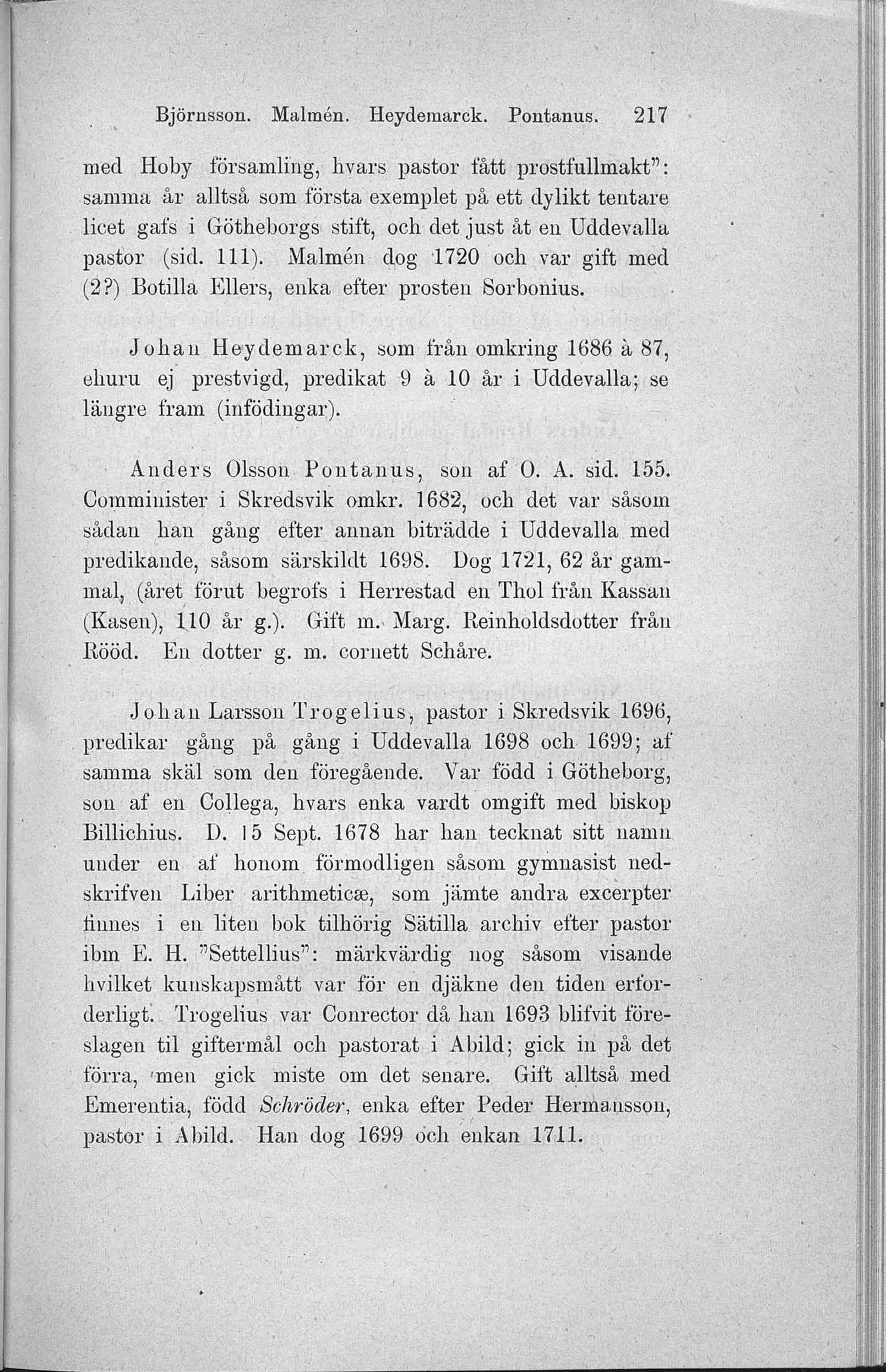 Björnsson. Malmén. Heydemarck. Pontanus. 217