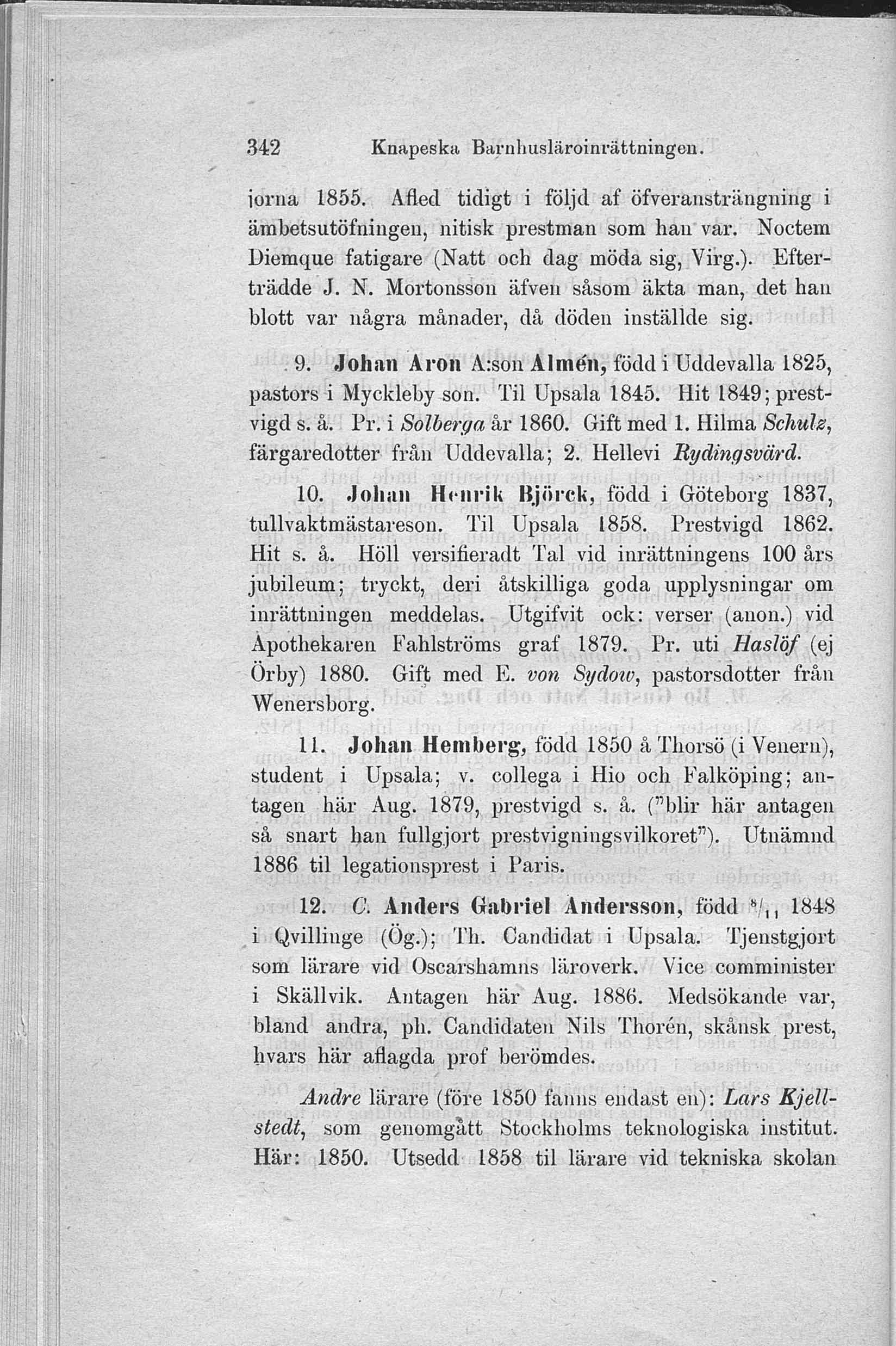 9. Johan Aron A:son Almén, född i Uddevalla 1825,