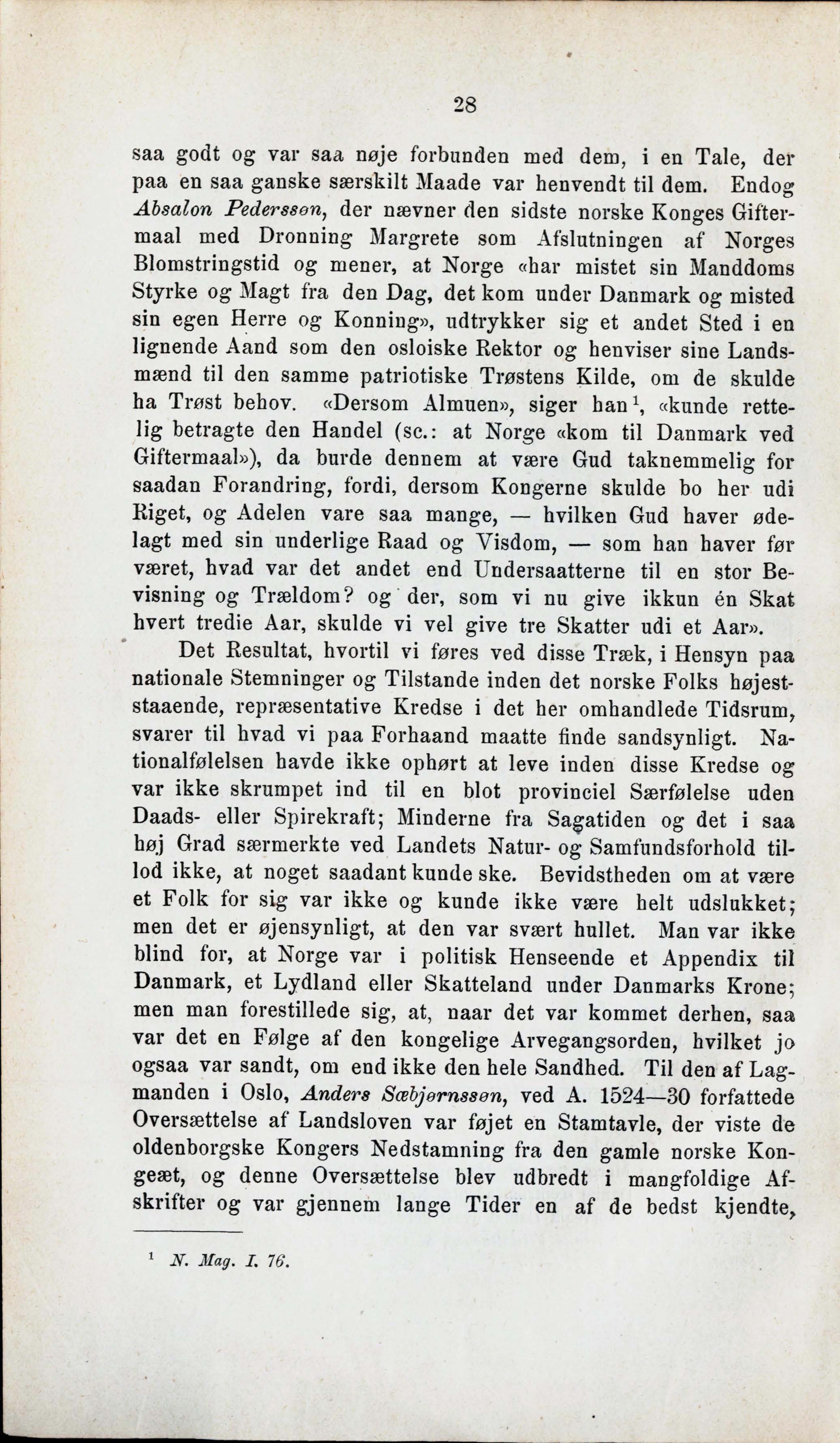 Absalon Pederssøn, der nævner den sidste norske Konges