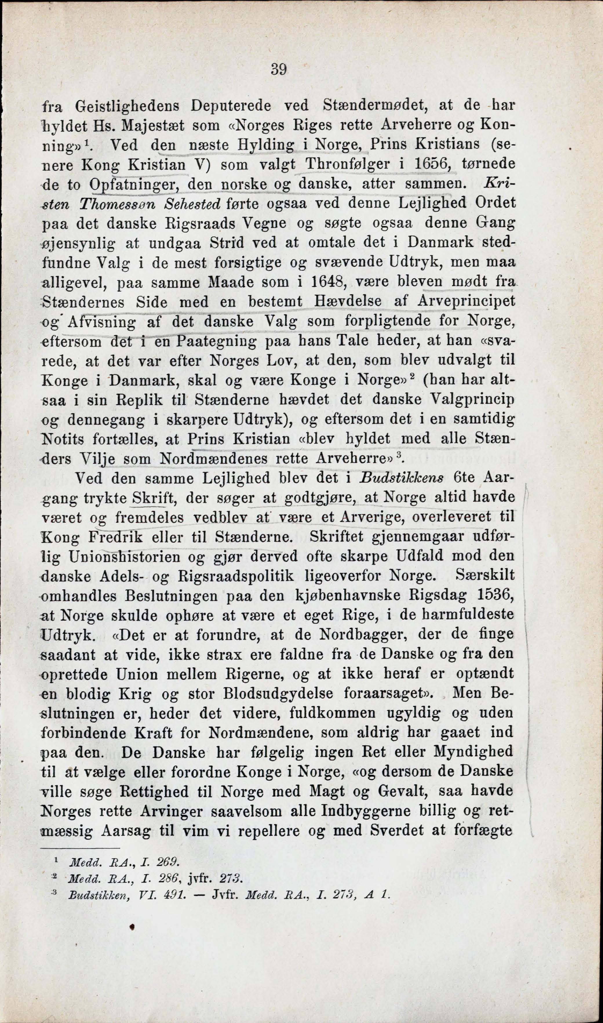 danske Adels- og Rigsraadspolitik ligeoverfor Norge. Særskilt