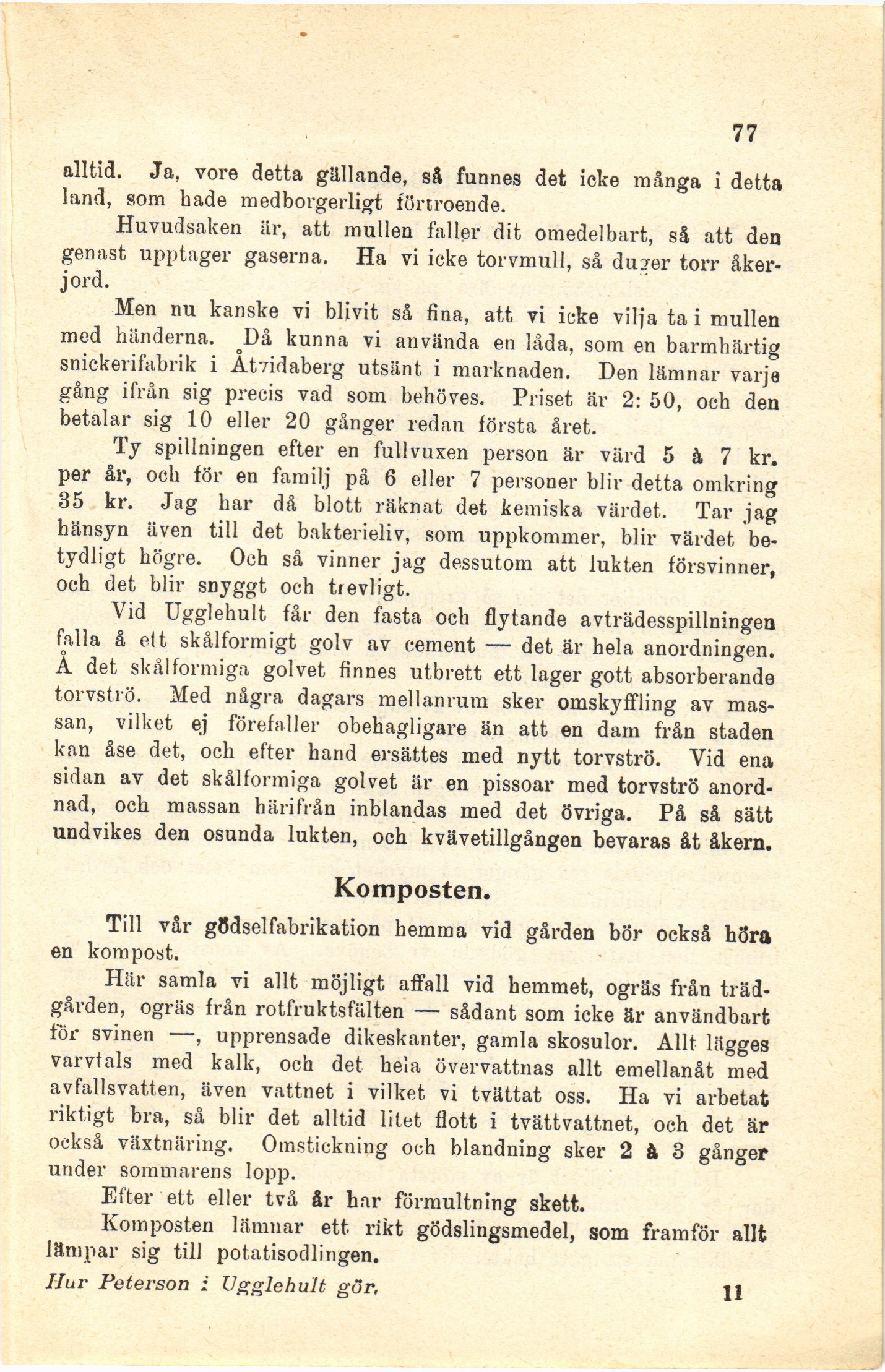 kan åse det, och efter hand ersattes med nytt torvströ. Vid ena