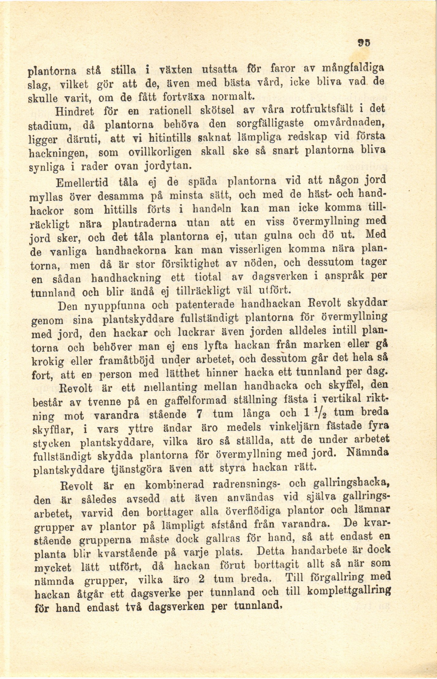 för hand endast två dagsverken per tunnland,