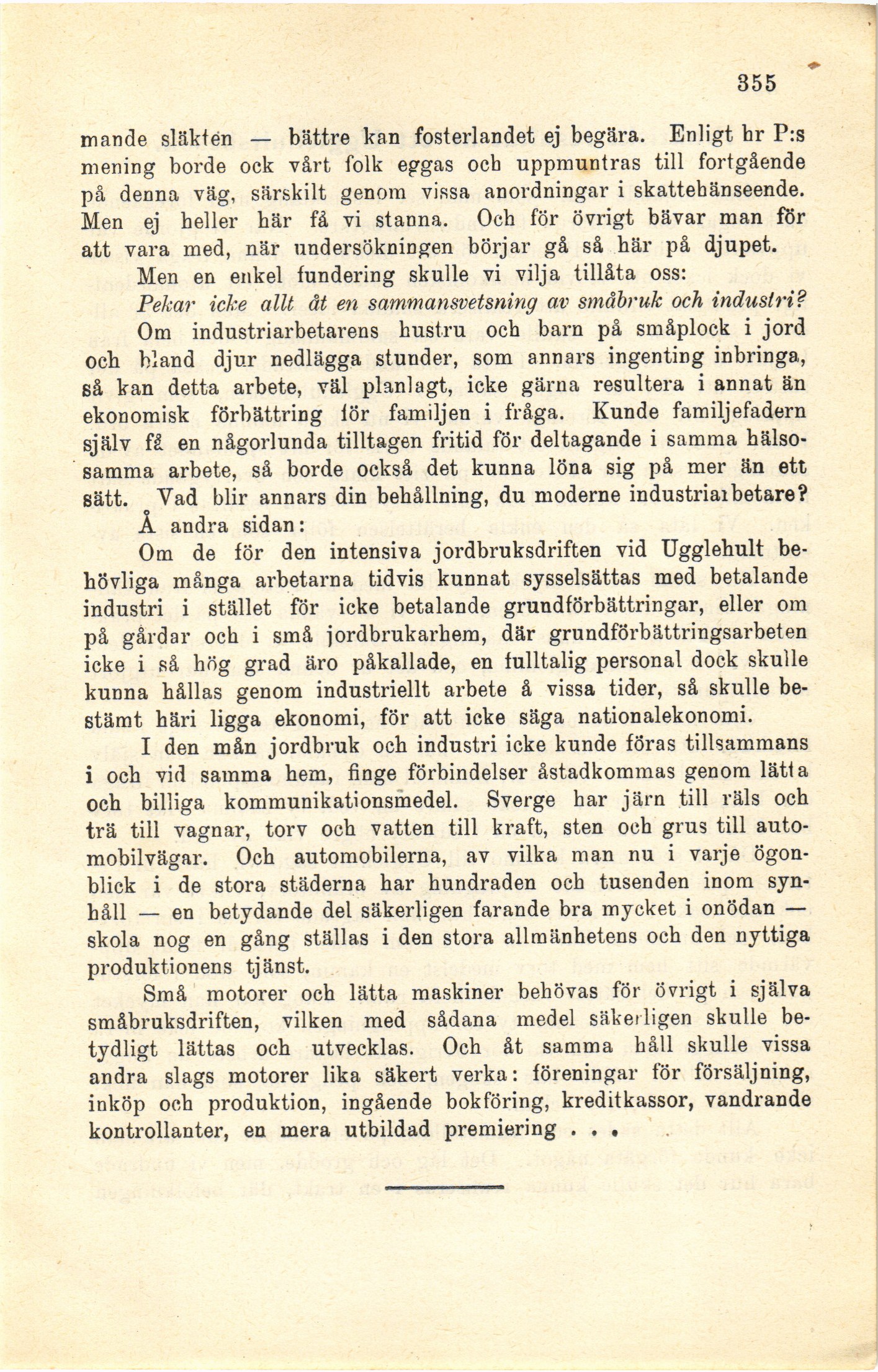 I den mån jordbruk och industri icke kunde föras tillsammans