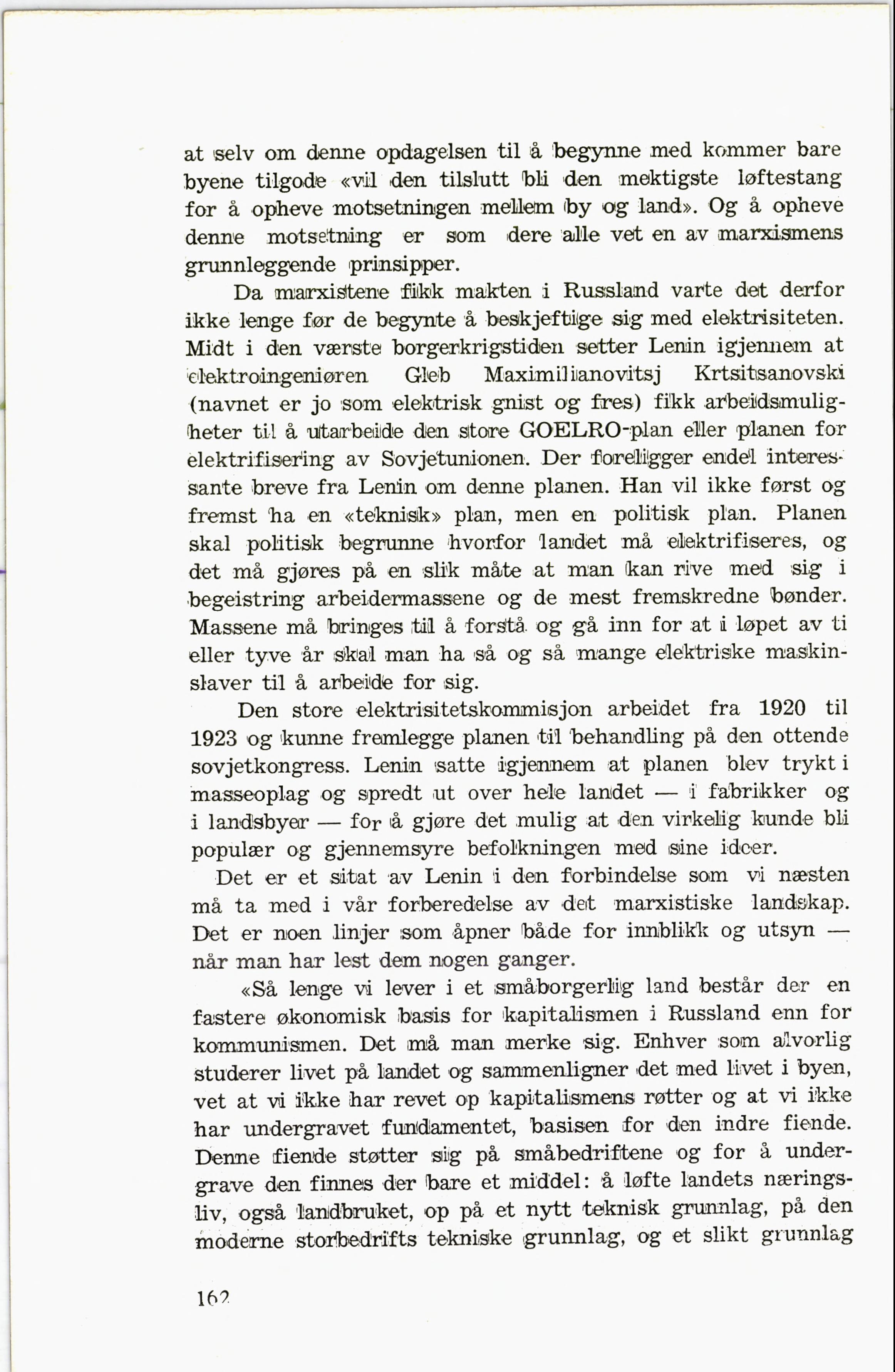 for å opheve motsetningen melletm by og land». Og å opheve