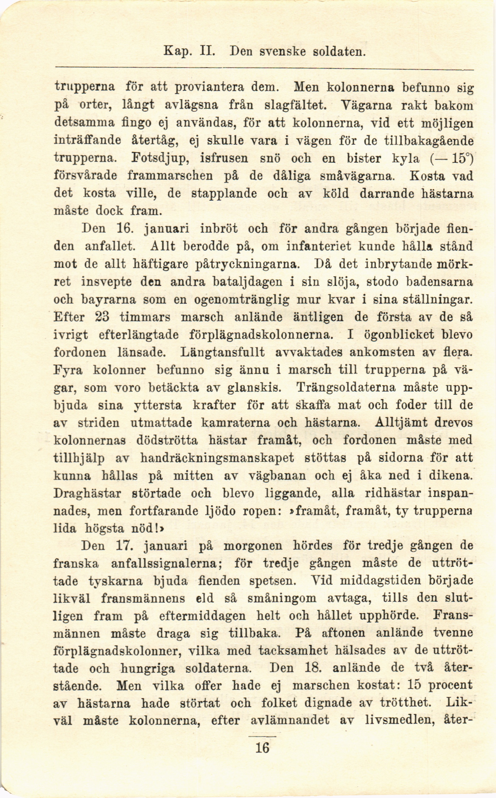 trupperna. Fotsdjup, isfrusen snö och en bister kyla (—15°)