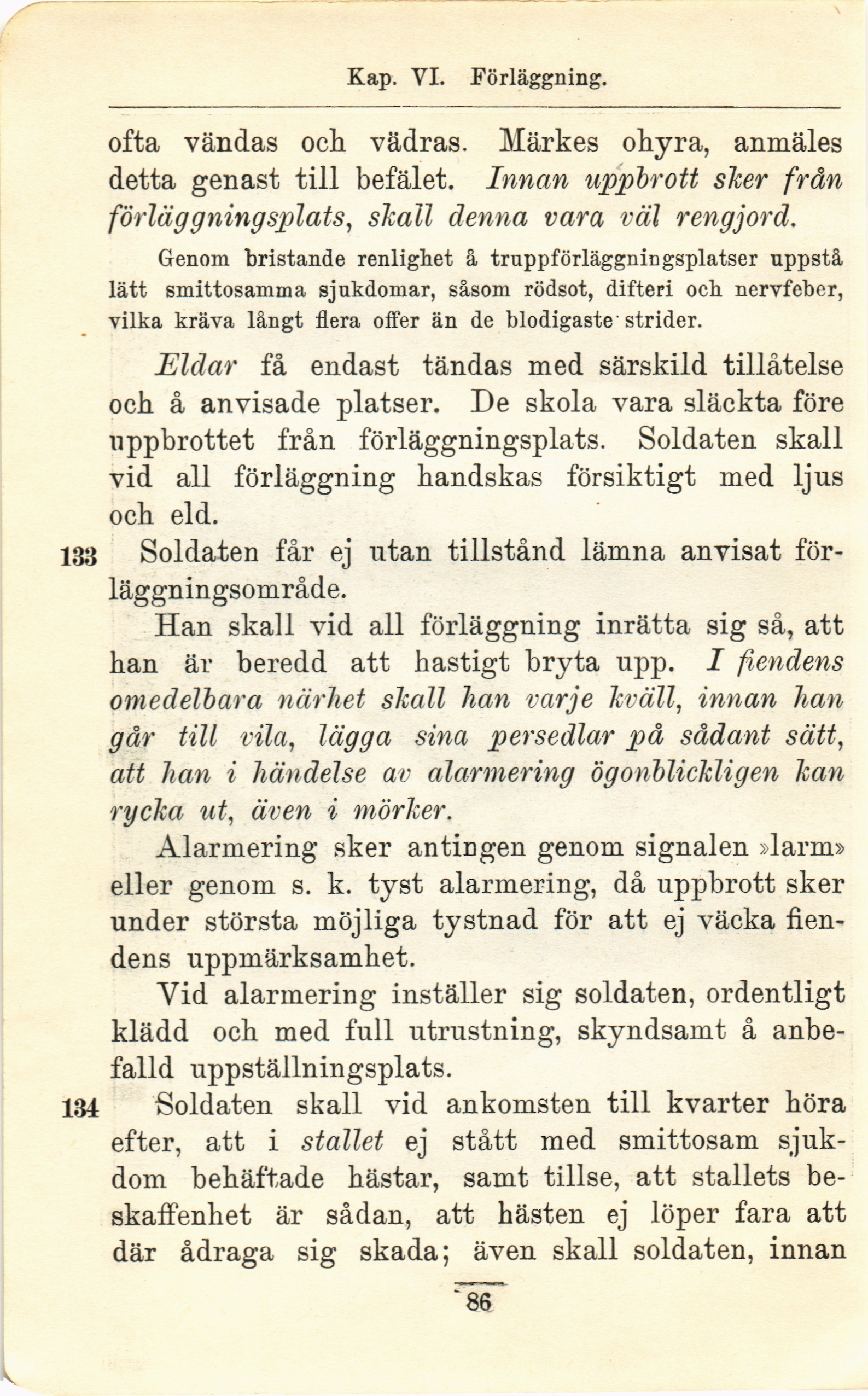 133. Soldaten får ej utan tillstånd lämna anvisat