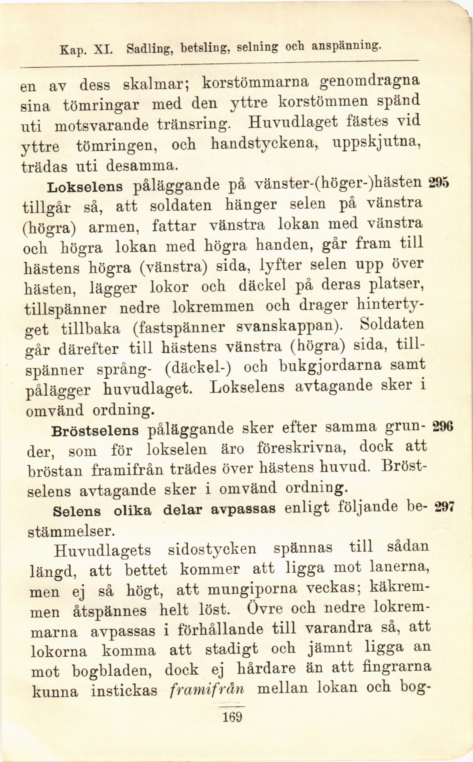 Kap. XI. Sadling, betsling, selning och anspänning.