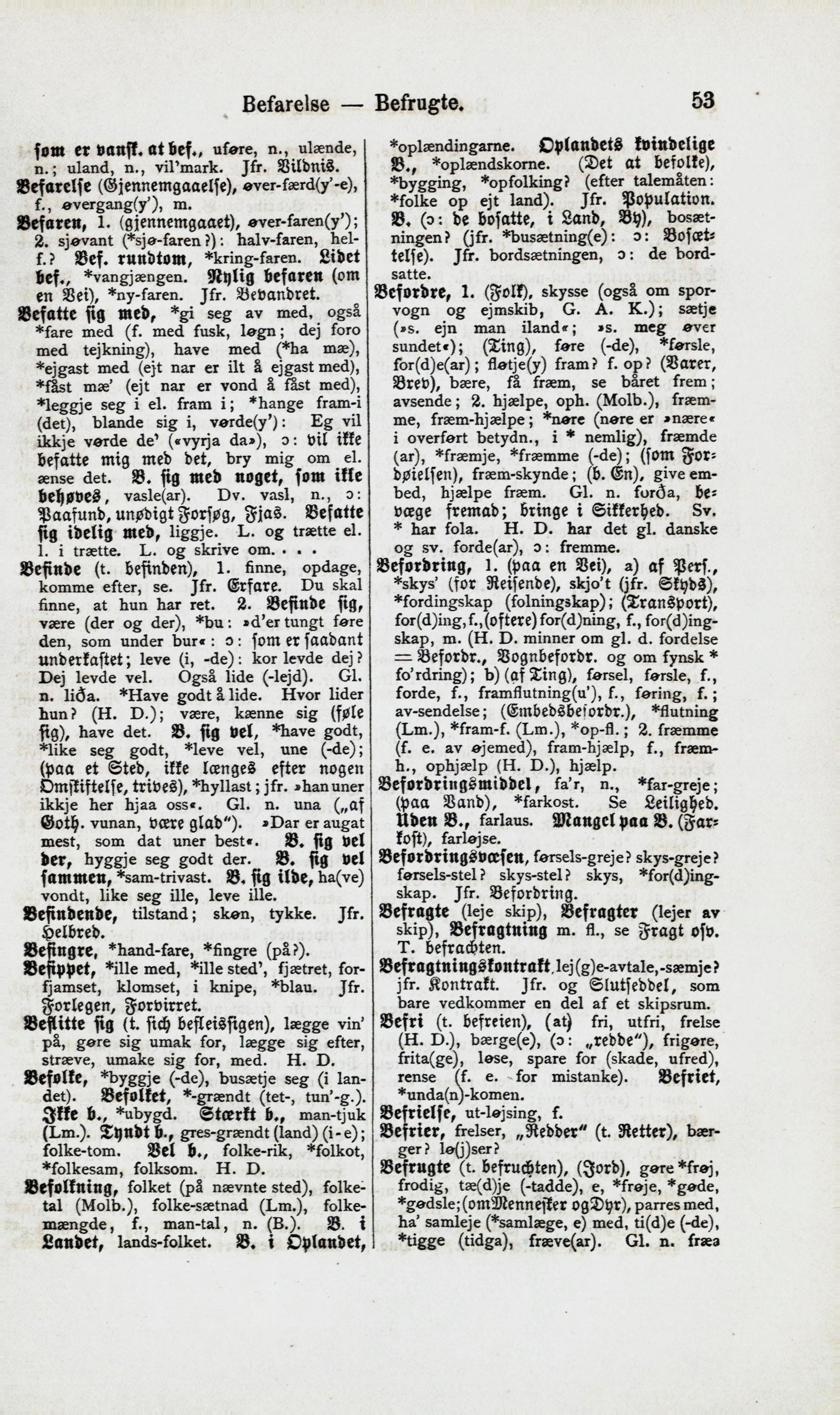 Befaren, 1. (gjennemgaaet), øver-faren(y’) ;