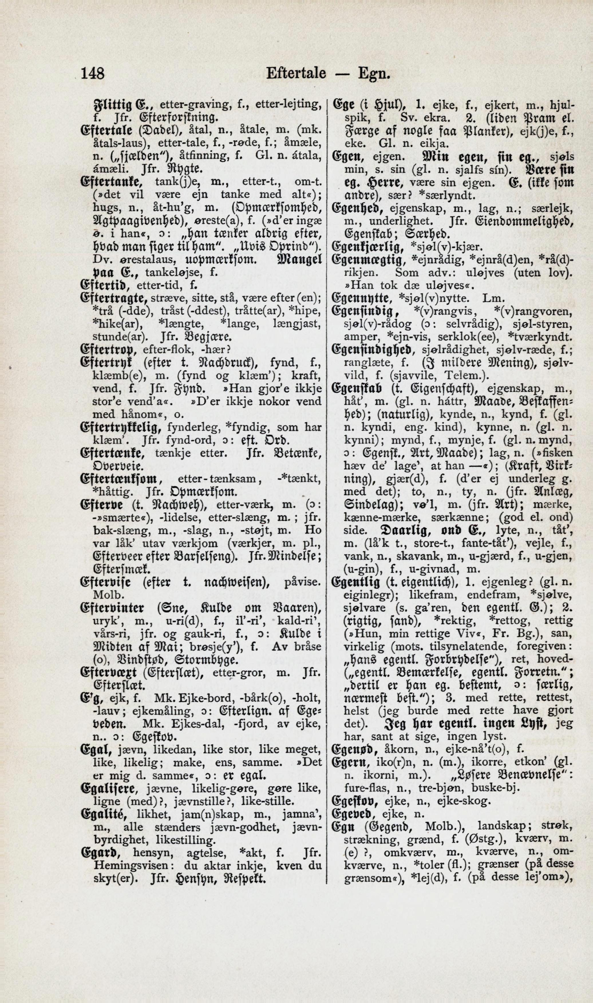 Egentlig (t. eigentlich), 1. e^enle^? (gl. n.