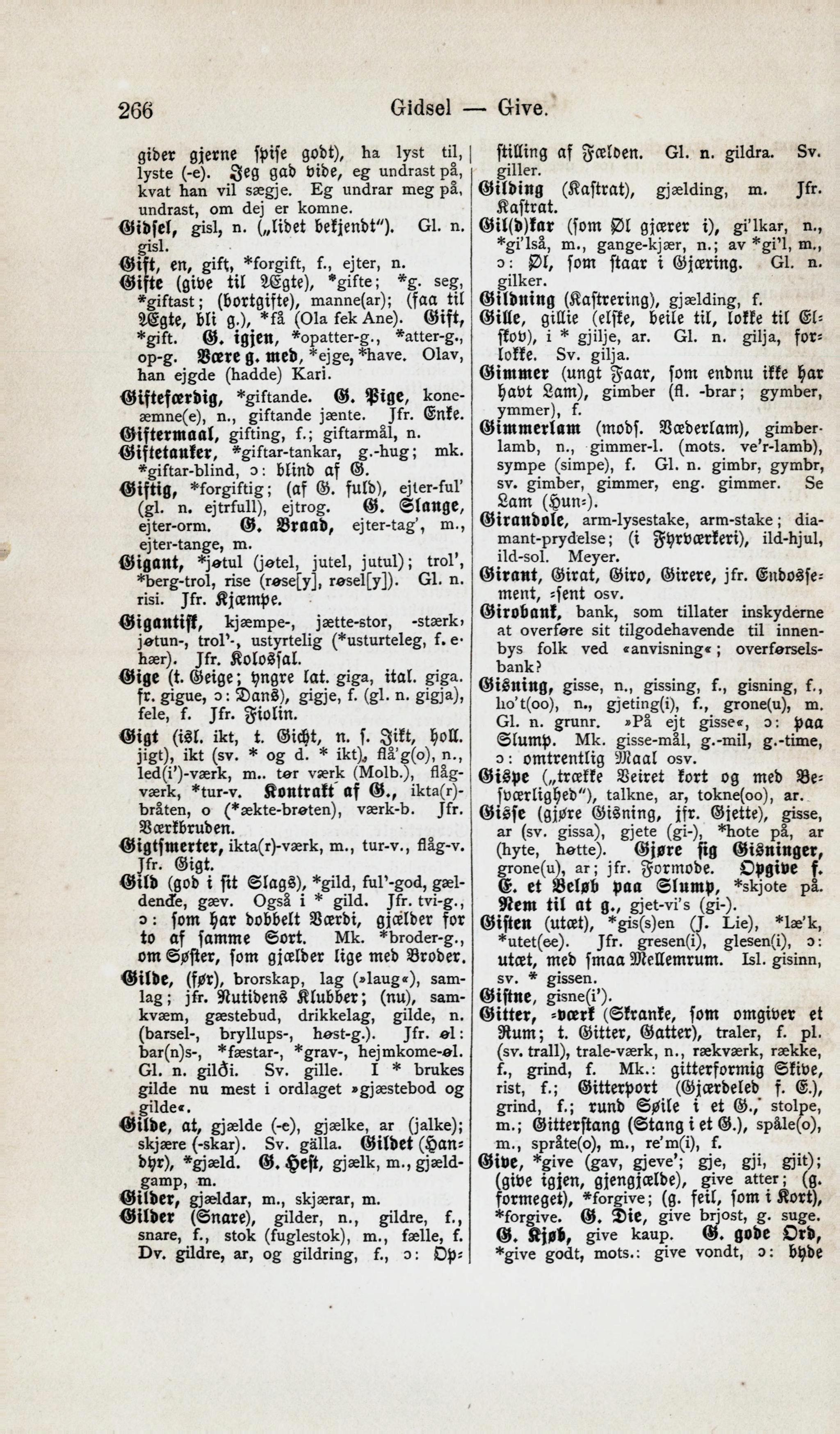 Give, *give (gav, gjeve’; gje, gji, gjit);