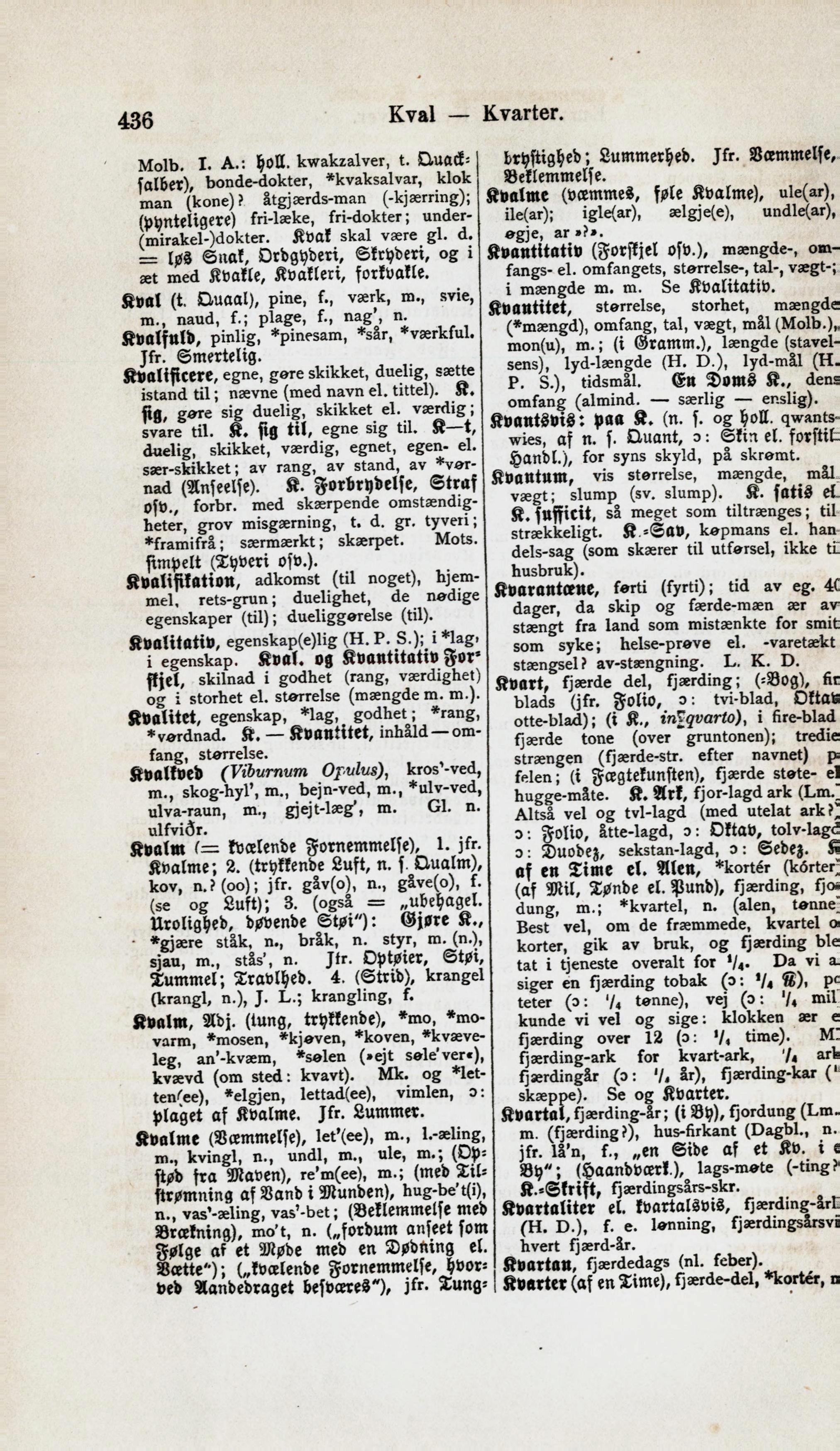 Kval (t. Quaal), pine, 1., værk, m., svie,