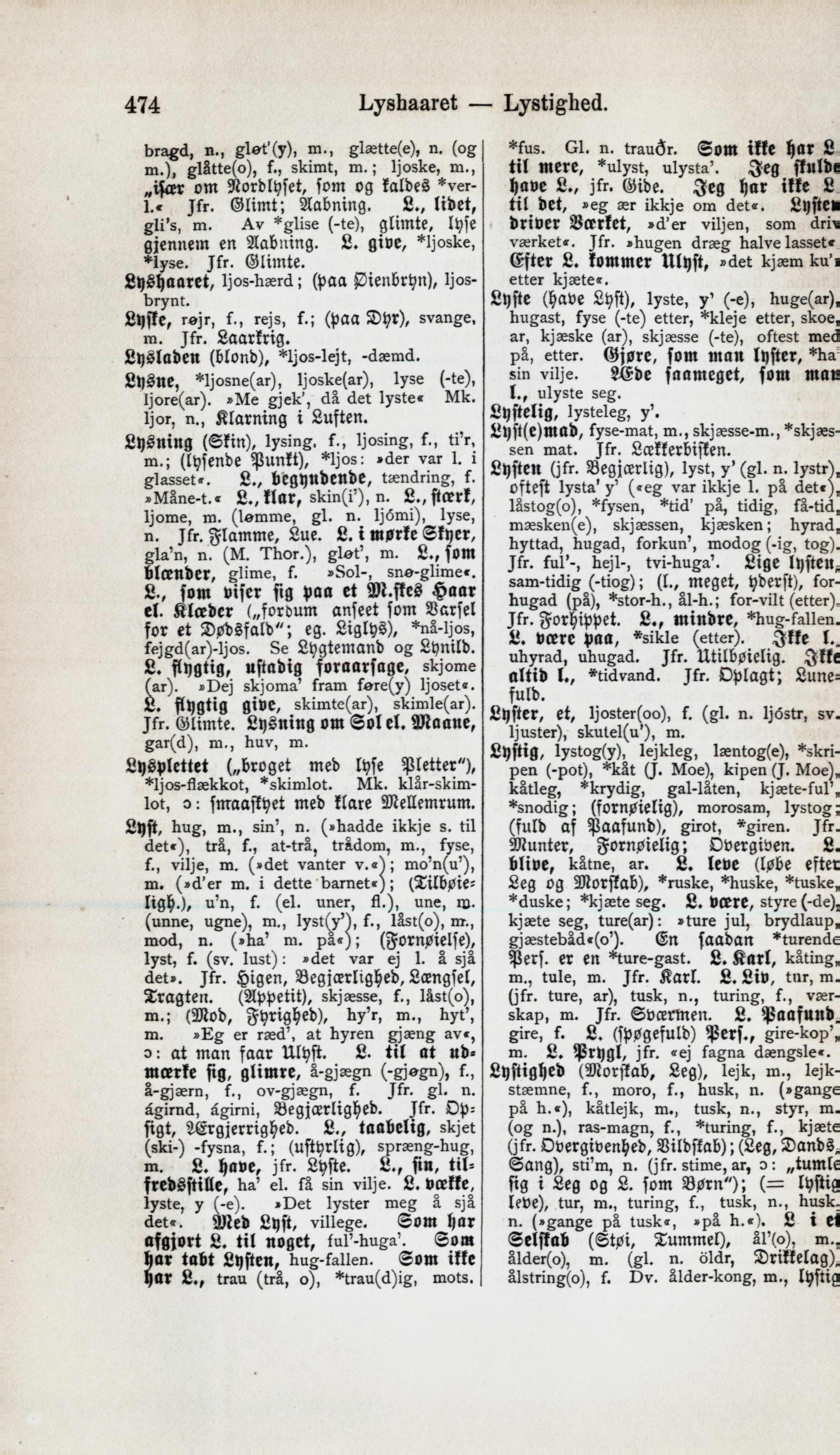 Lyste (have Lyst), lyste, y (-e), huge(ar),