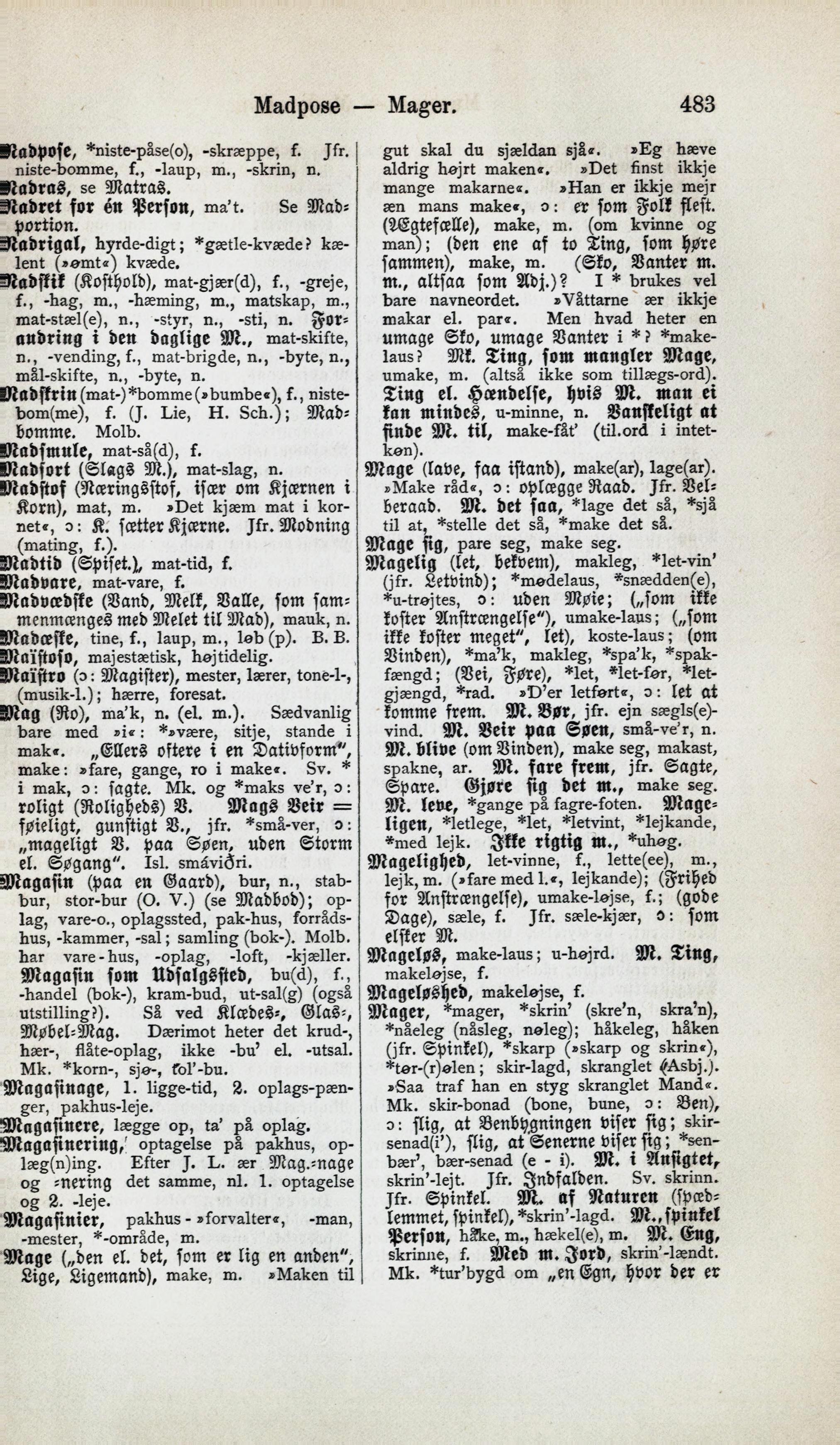 Mag (Ro), rna’k, n. (el. m.). Sædvanlig