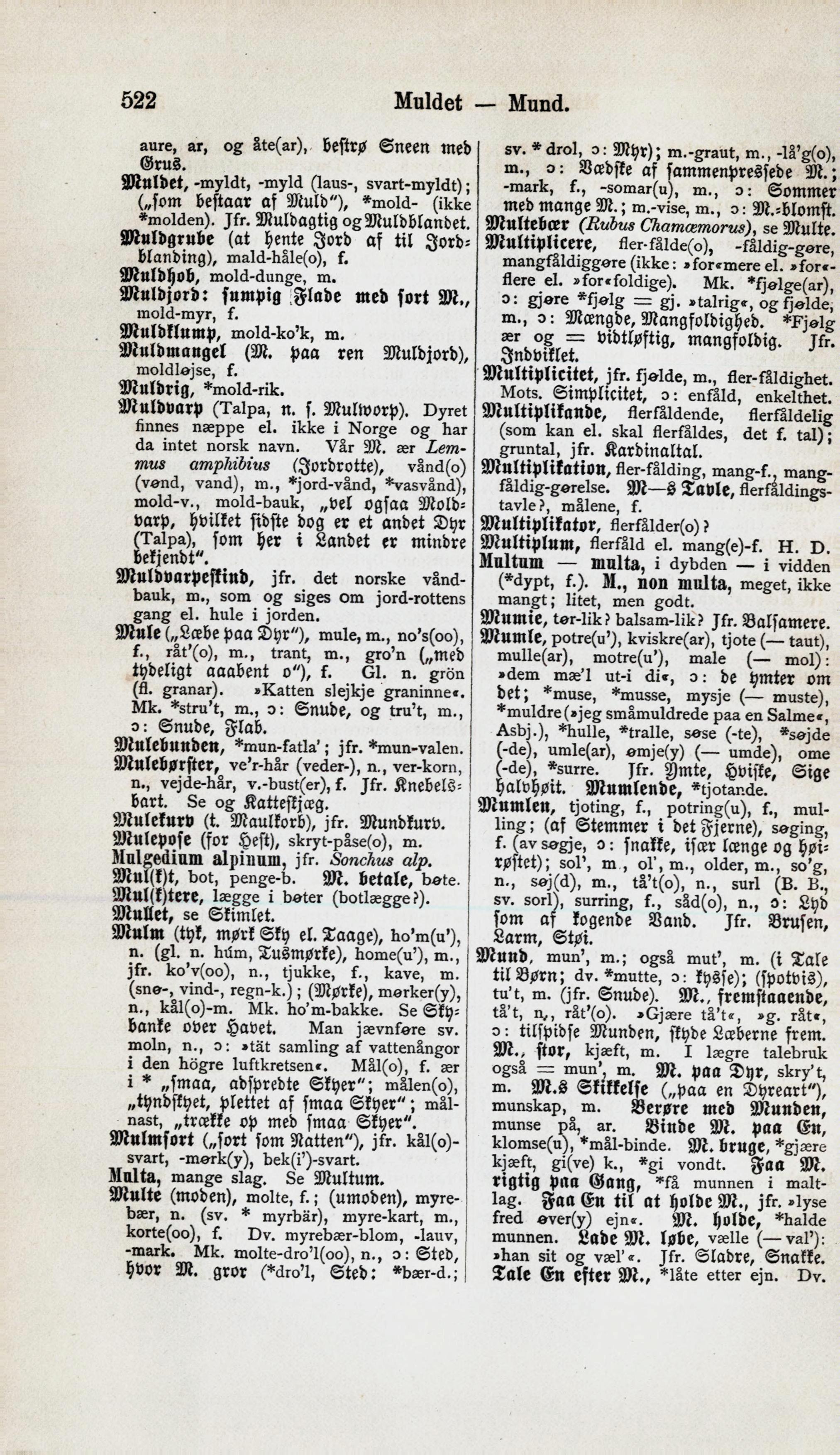 Mnldet, -myldt, -myld (laus-, svart-myldt) ;