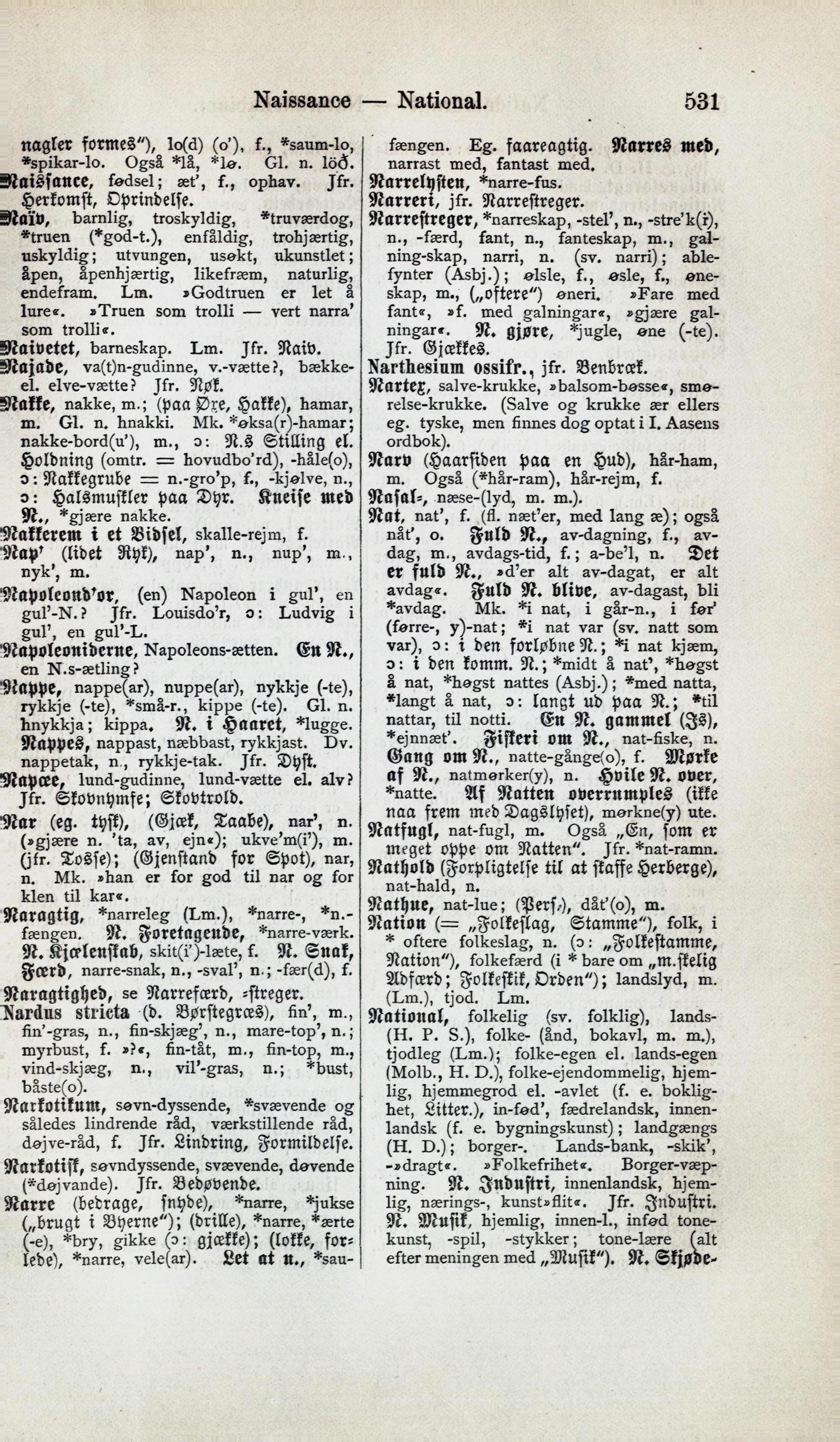 Naragtig, *narreleg (1.N!.), *narre-, *n.
