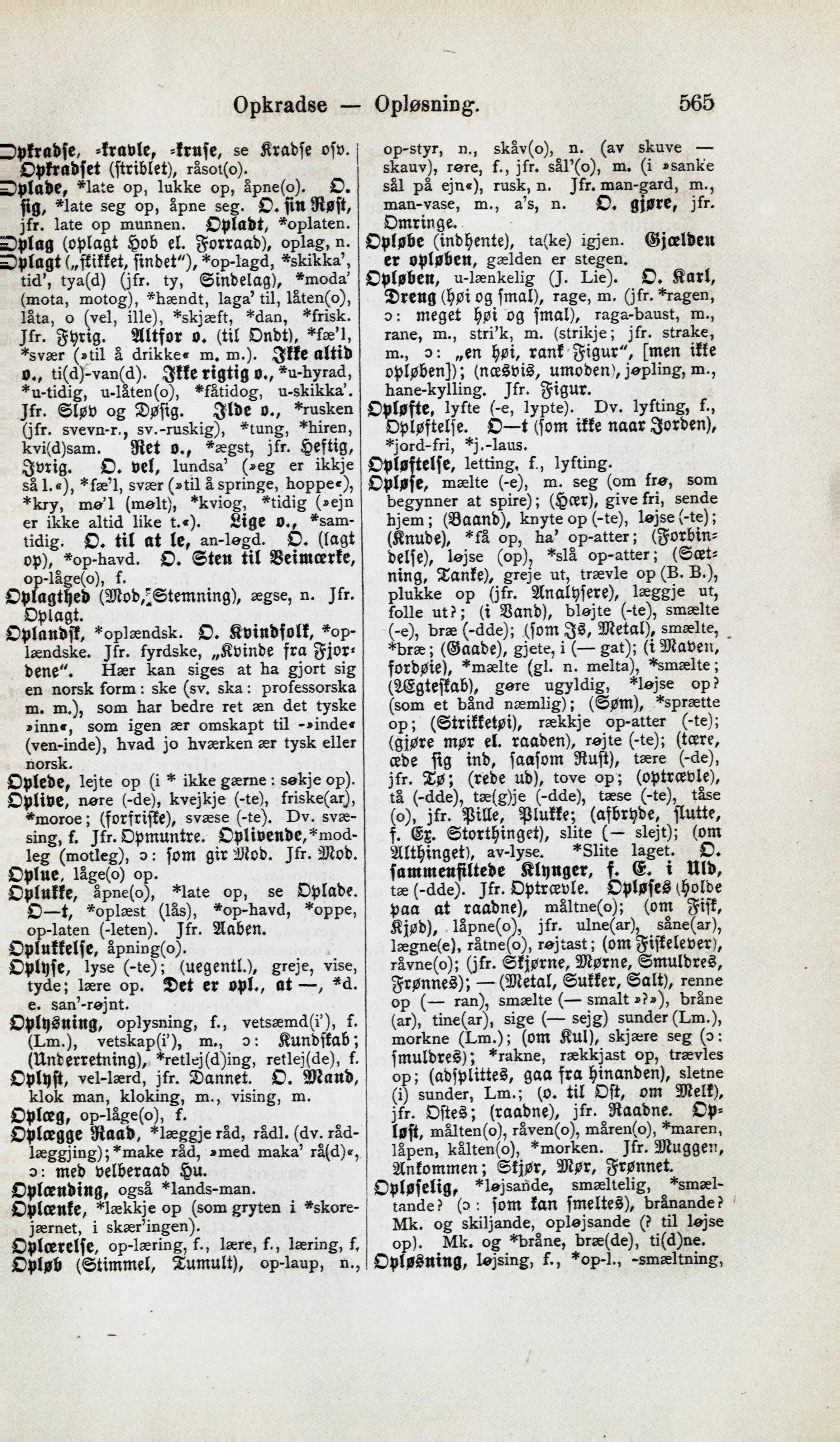 jfr. %ø; (rede ud), tove op; (optrcrvle),
