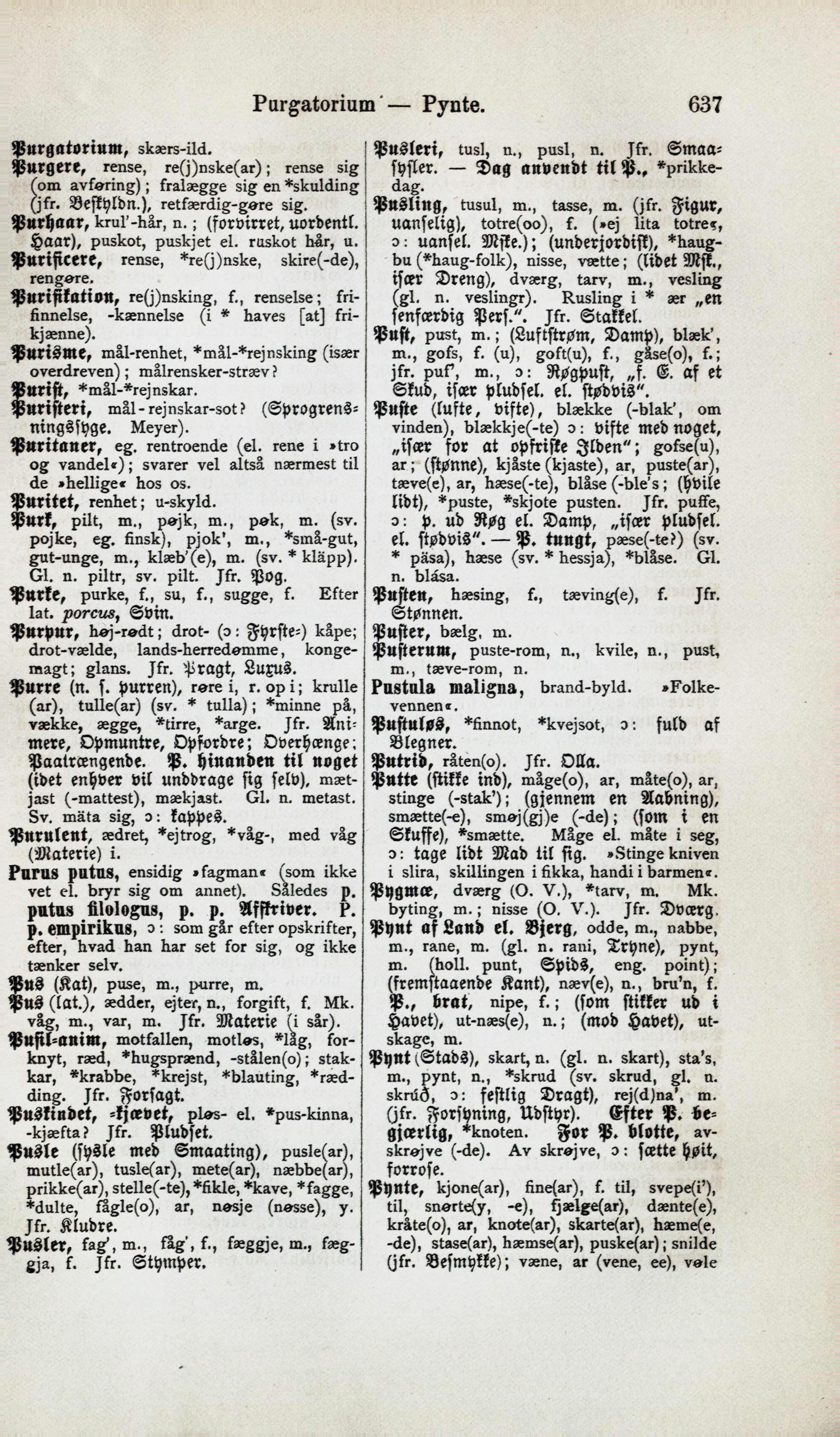 Pus (lat.), ædder, ester, n., forgift, f. Mk.