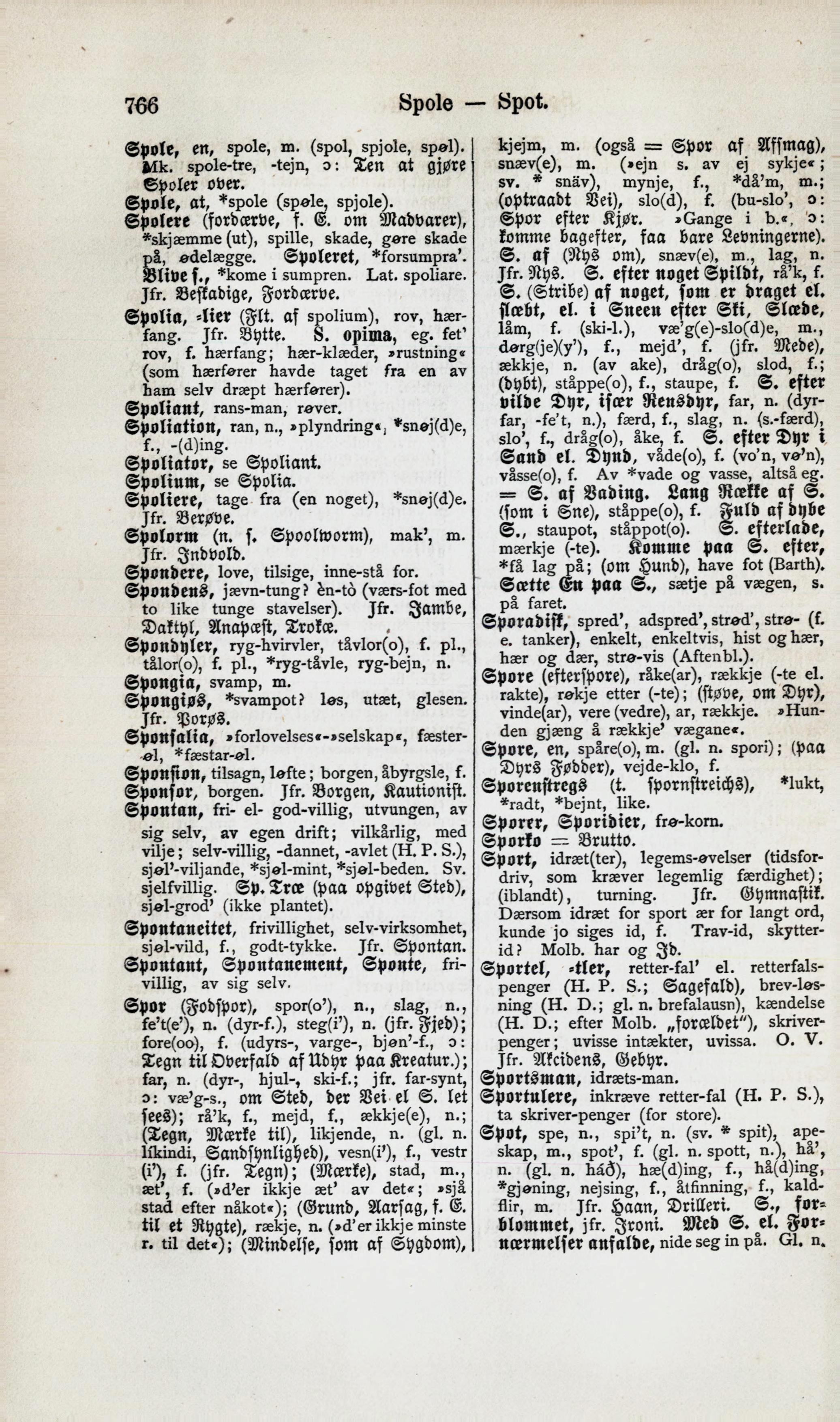 ©por (gobfpOt), spor(o’), n., slag, n.,