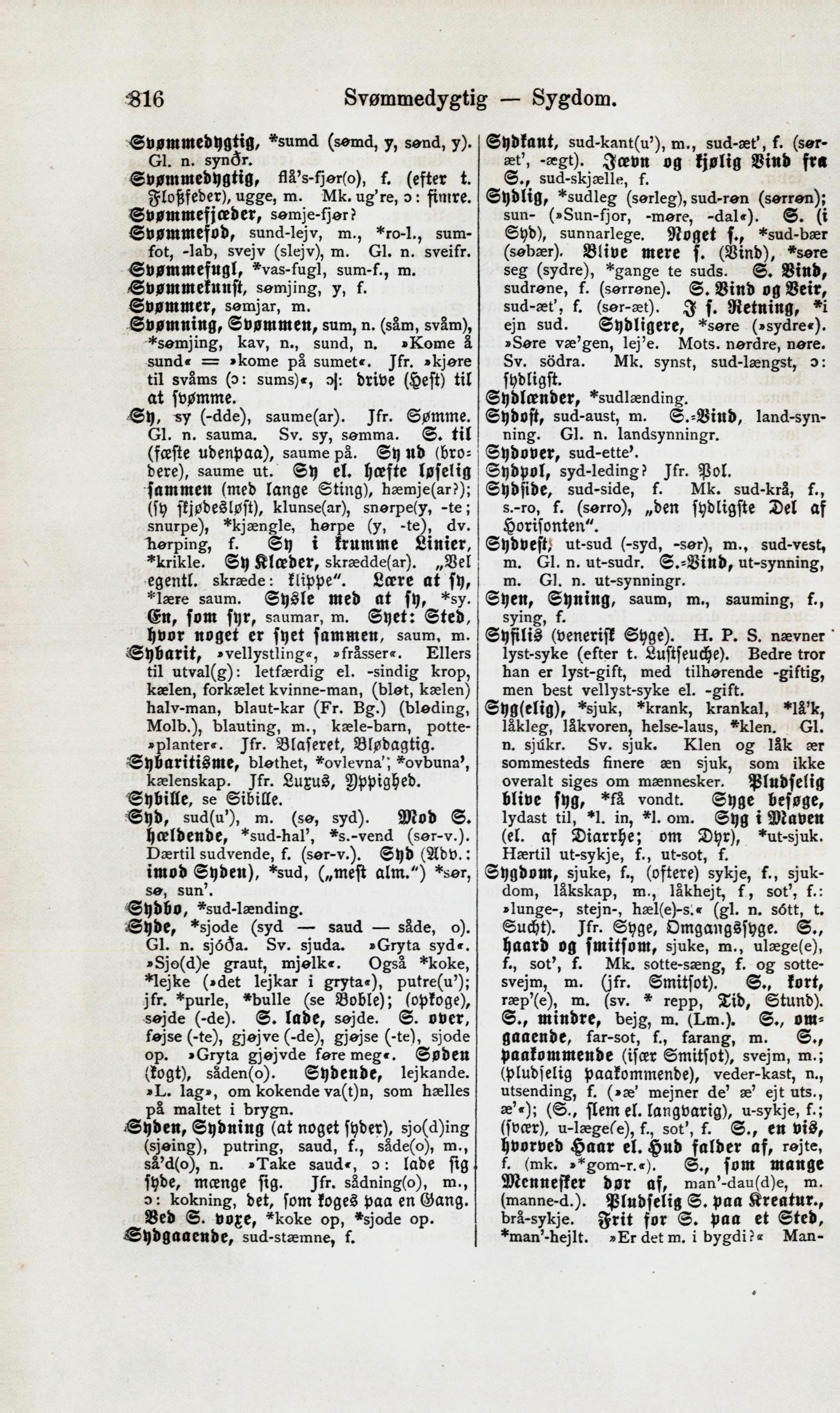 Syd, sud(u’), m. (se, syd). Mod S.
