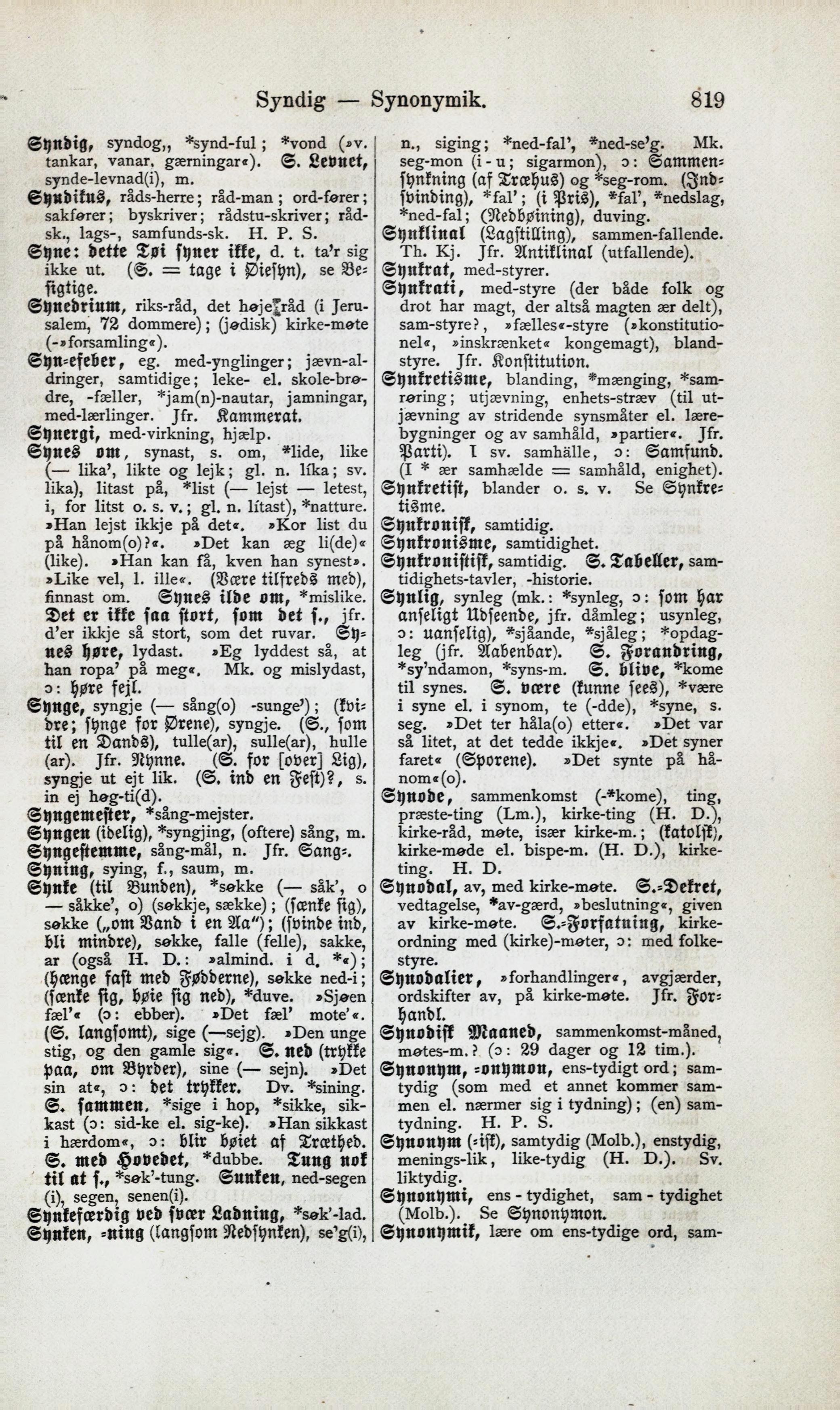 Syndig — Synonymik, 819