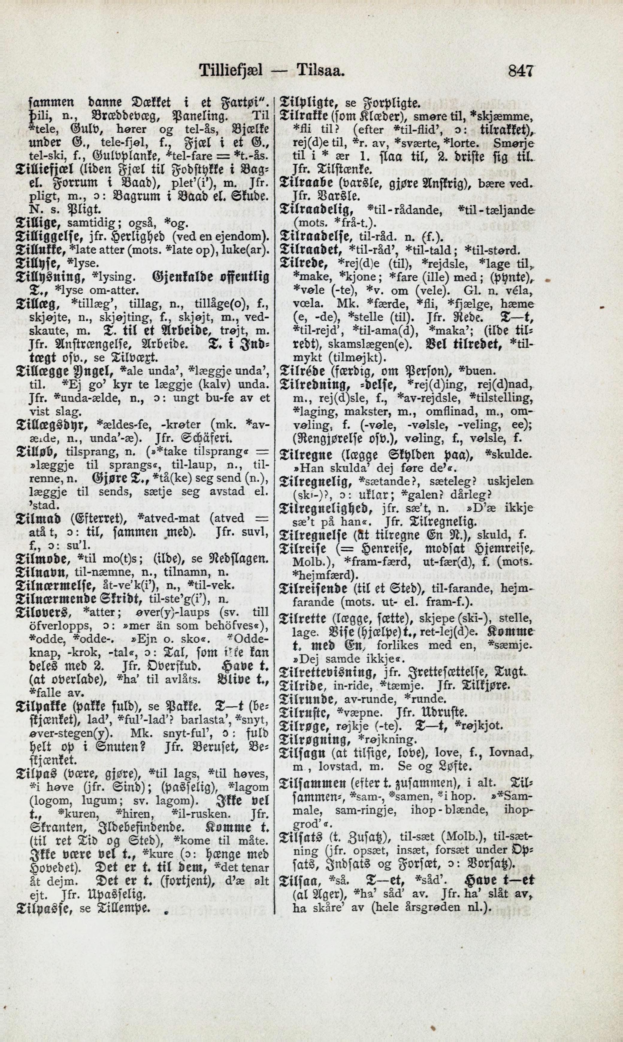 Tilloeg, *tillæg\ tillag, n., tillåge(o), f.,