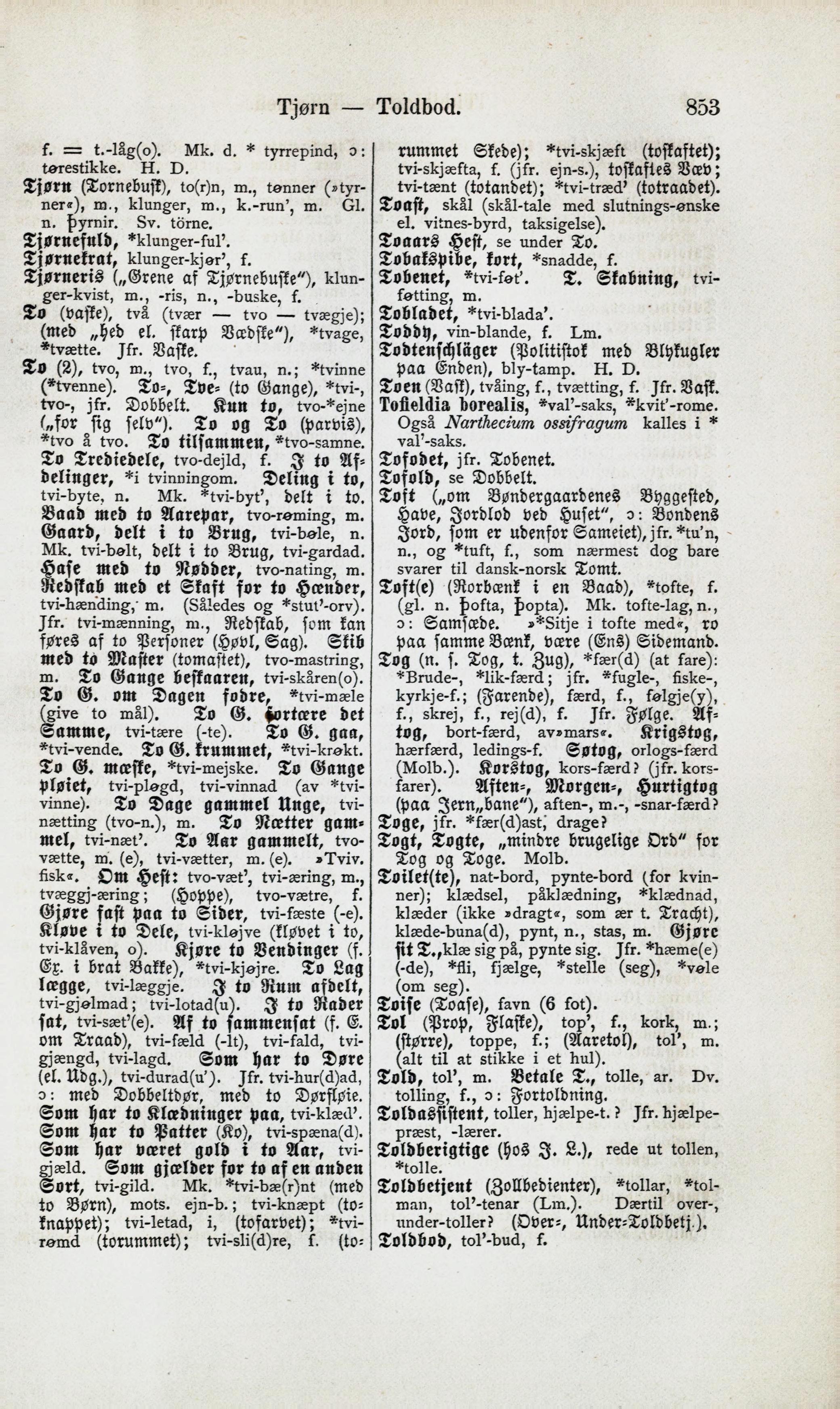 tvi-tænt (totandet); *tvi-træd’ (totraadet).