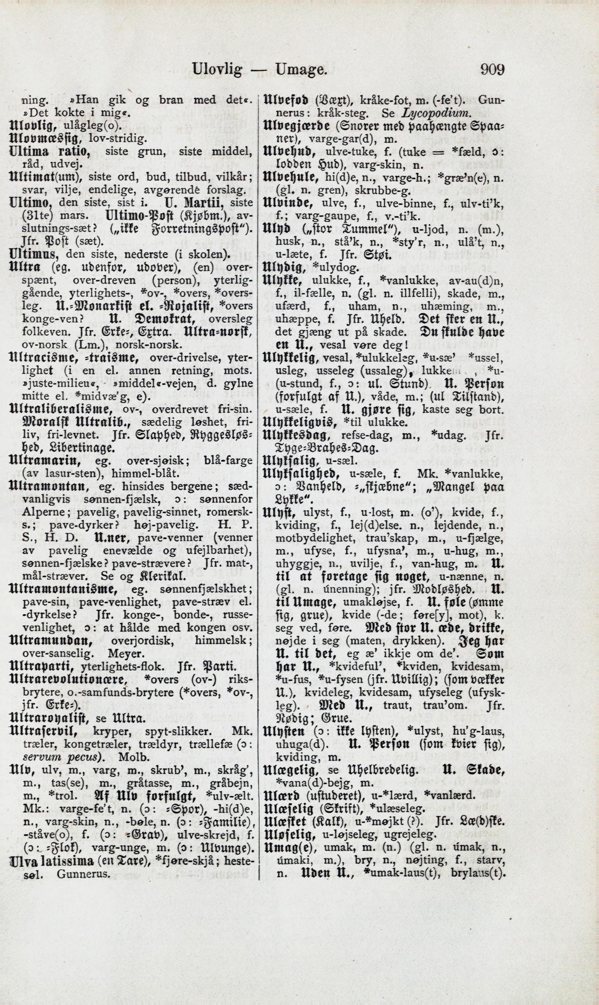 Ulvinde, ulve, f., ulve-dinne, f., ulv-ti’ll,