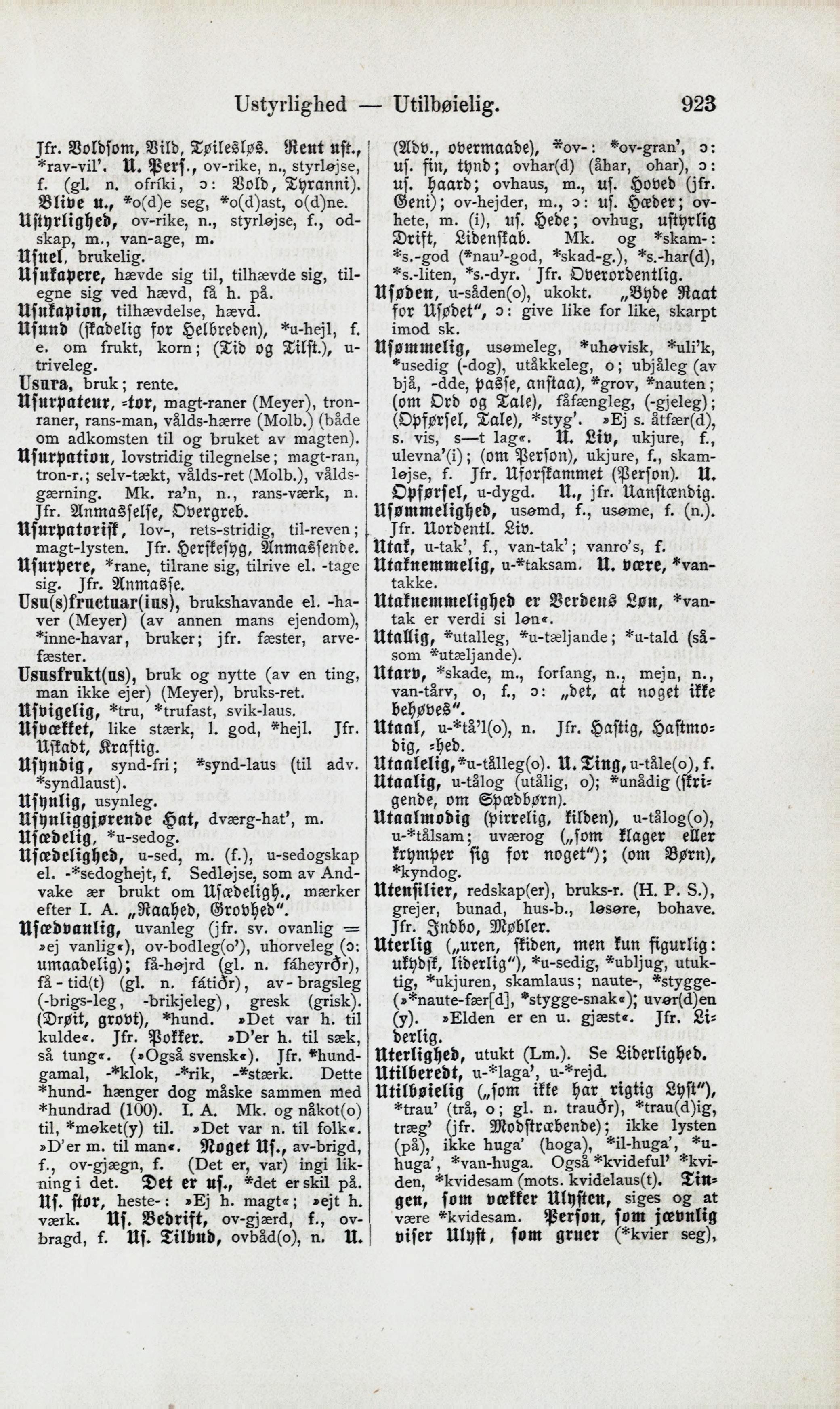 Ustyrlighed — Utilbøielig. 923