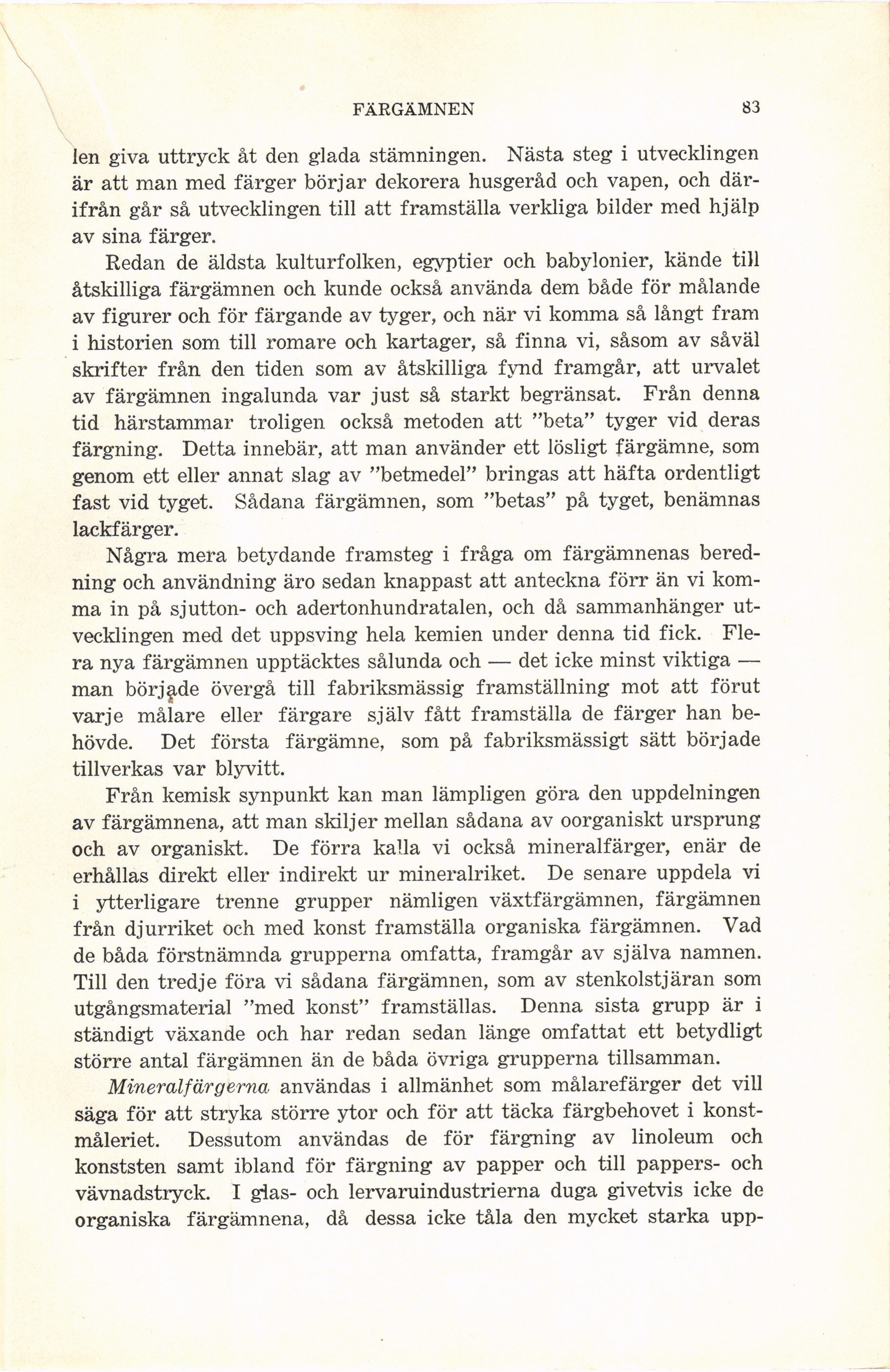 och av organiskt. De förra kalla vi också mineralfärger, enär de