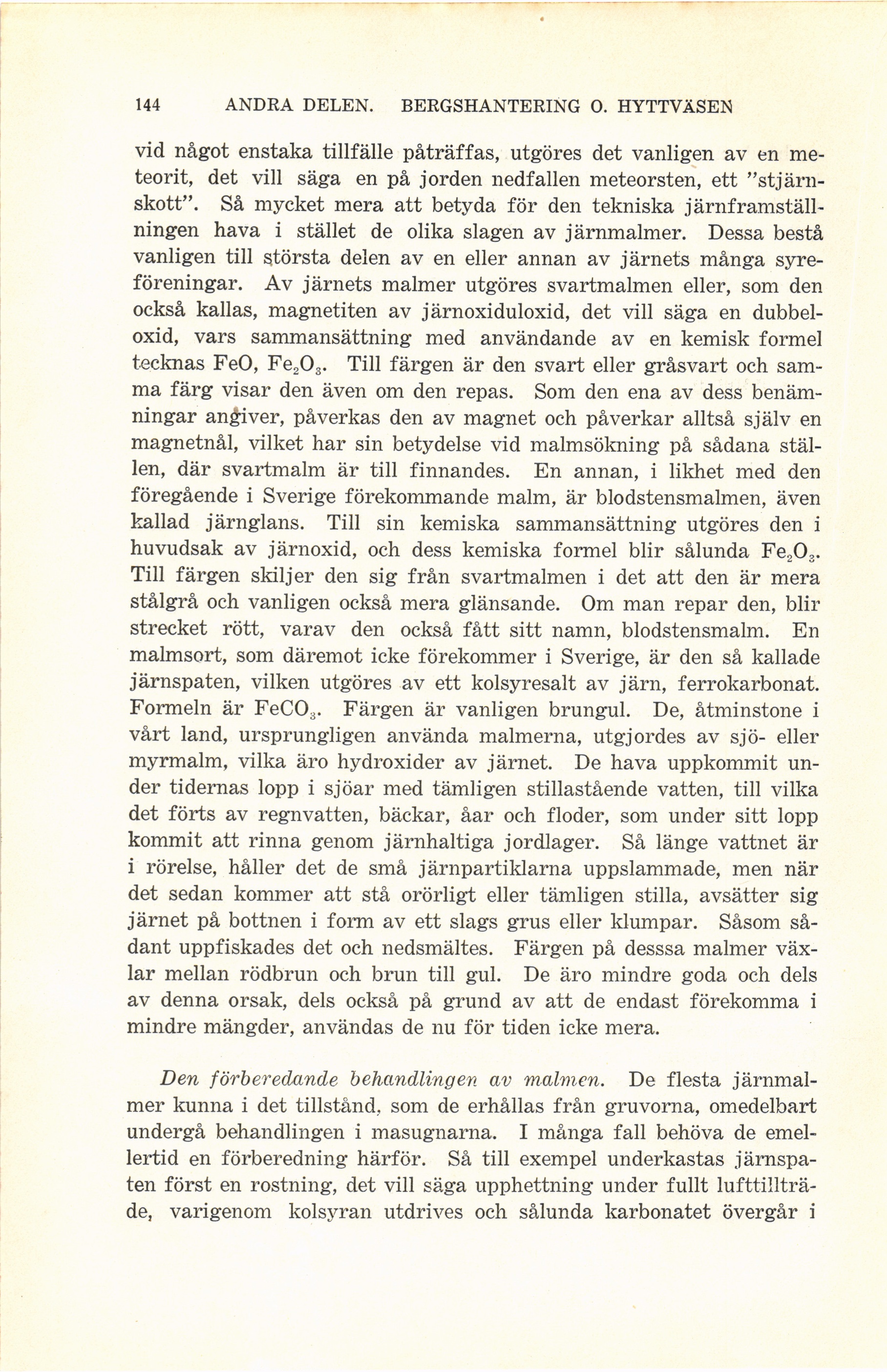 144 ANDRA DELEN. BERGSHANTERING O. HYTTVÄSEN