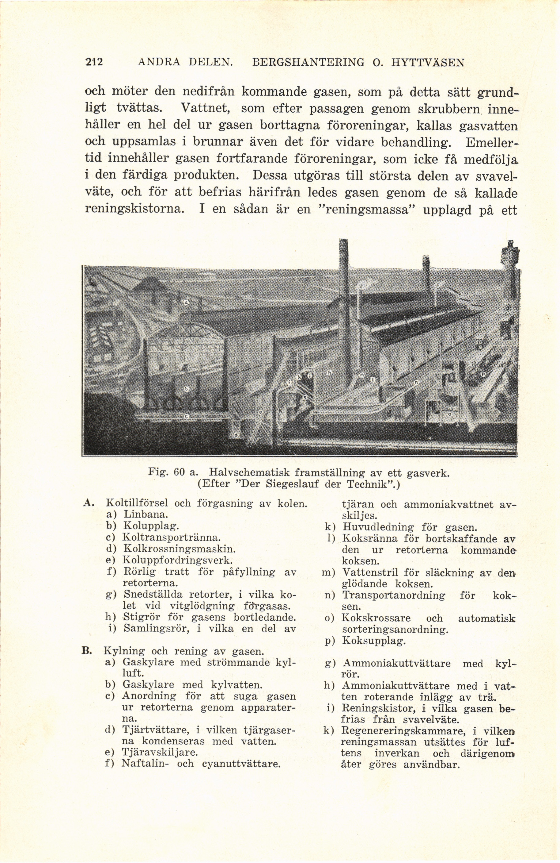 Fig. 60 a. Halvschematisk framställning av ett gasverk.