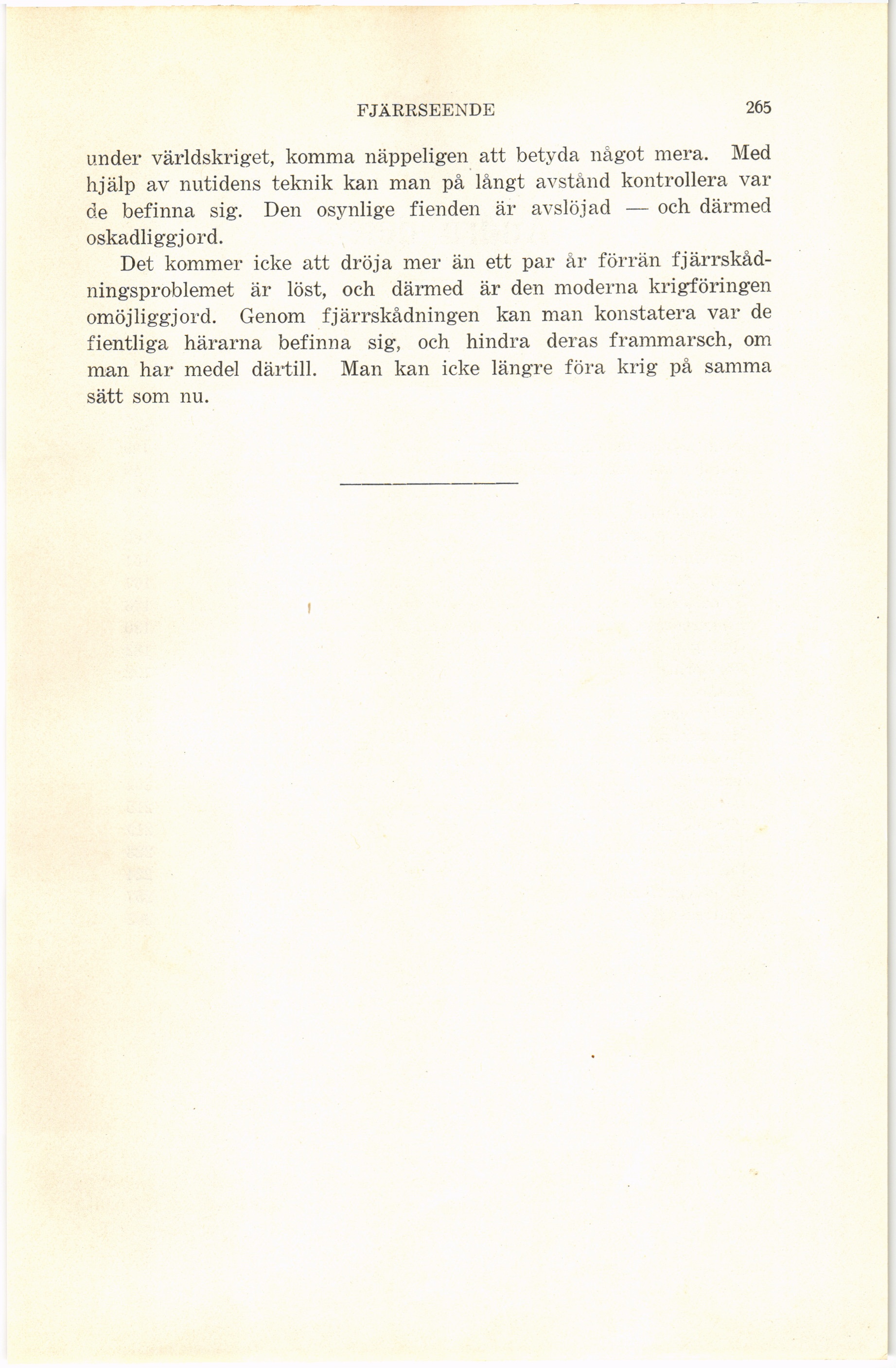 fjärrskåd-ningsproblemet är löst, och därmed är den moderna krigföringen