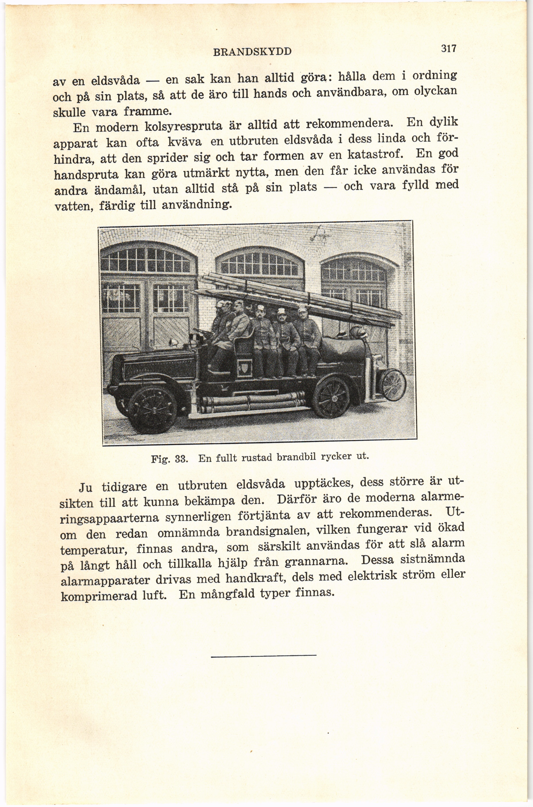 Fig. 33. En fullt rustad brandbil rycker ut.