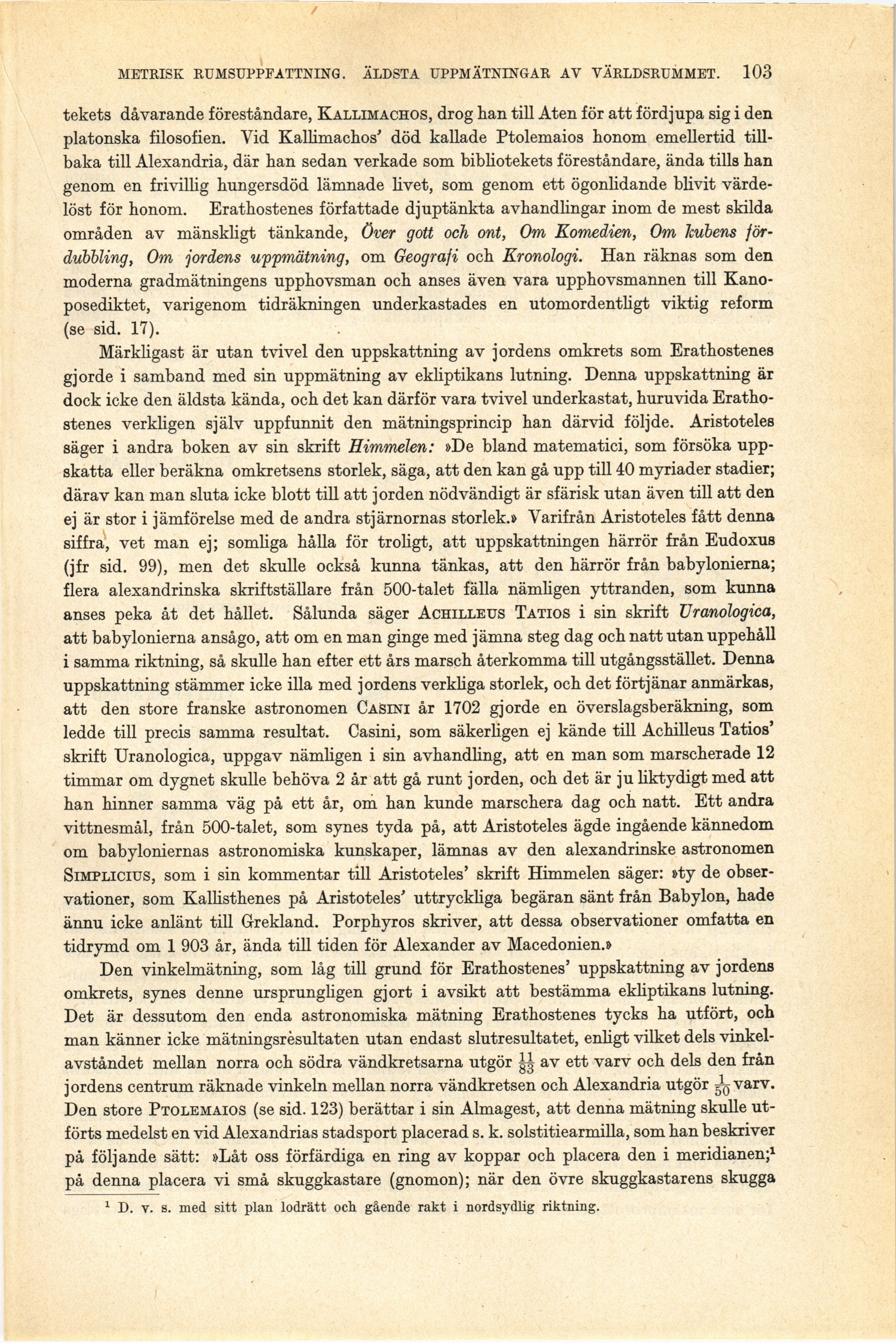 METRISK RUMSUPPFATTNING. ÄLDSTA UPPMÄTNINGAR AV VÄRLDSRUMMET. 103