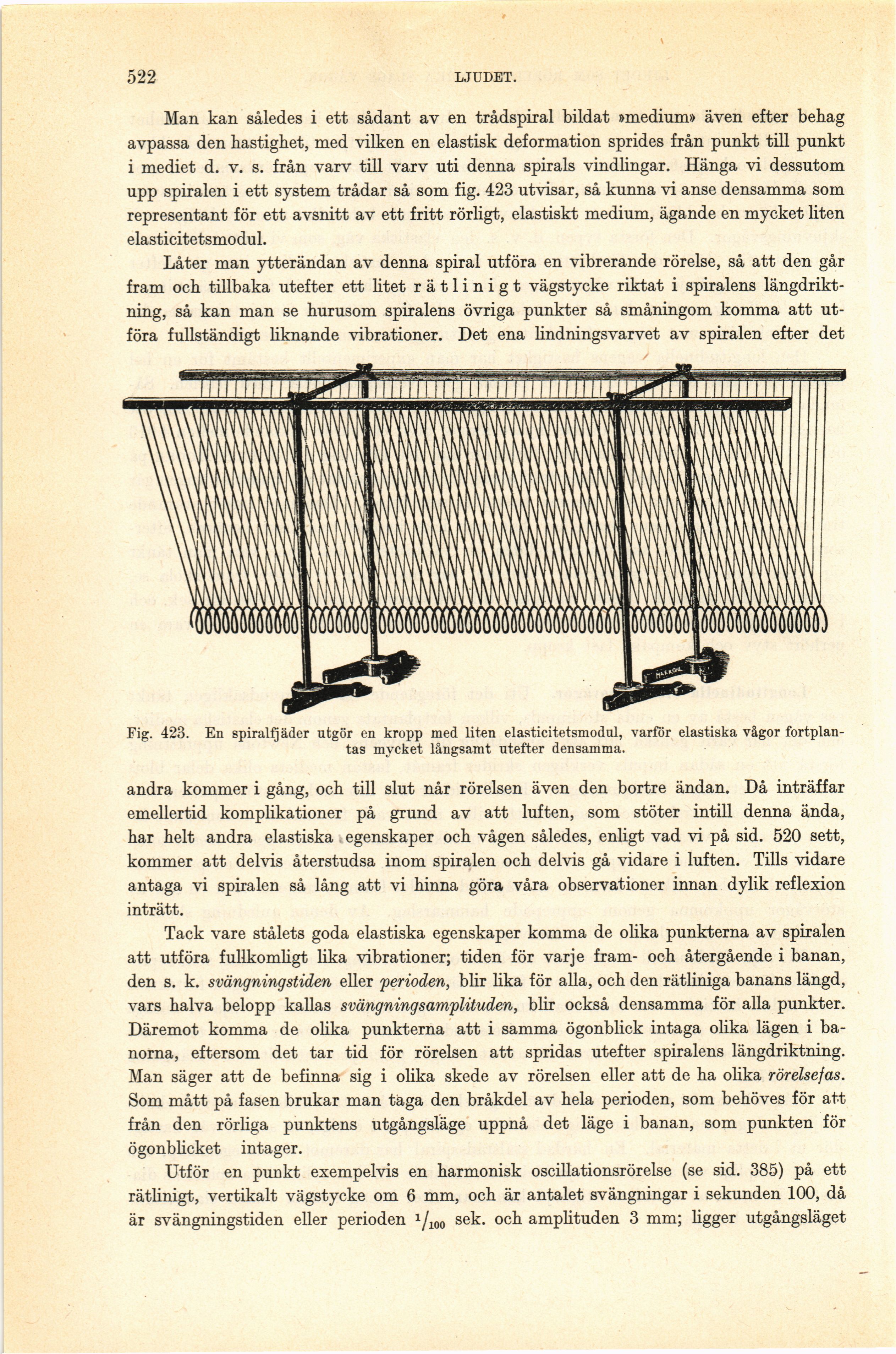 Fig. 423. En spiralfjäder utgör en kropp med liten elasticitetsmodul, varför elastiska vågor