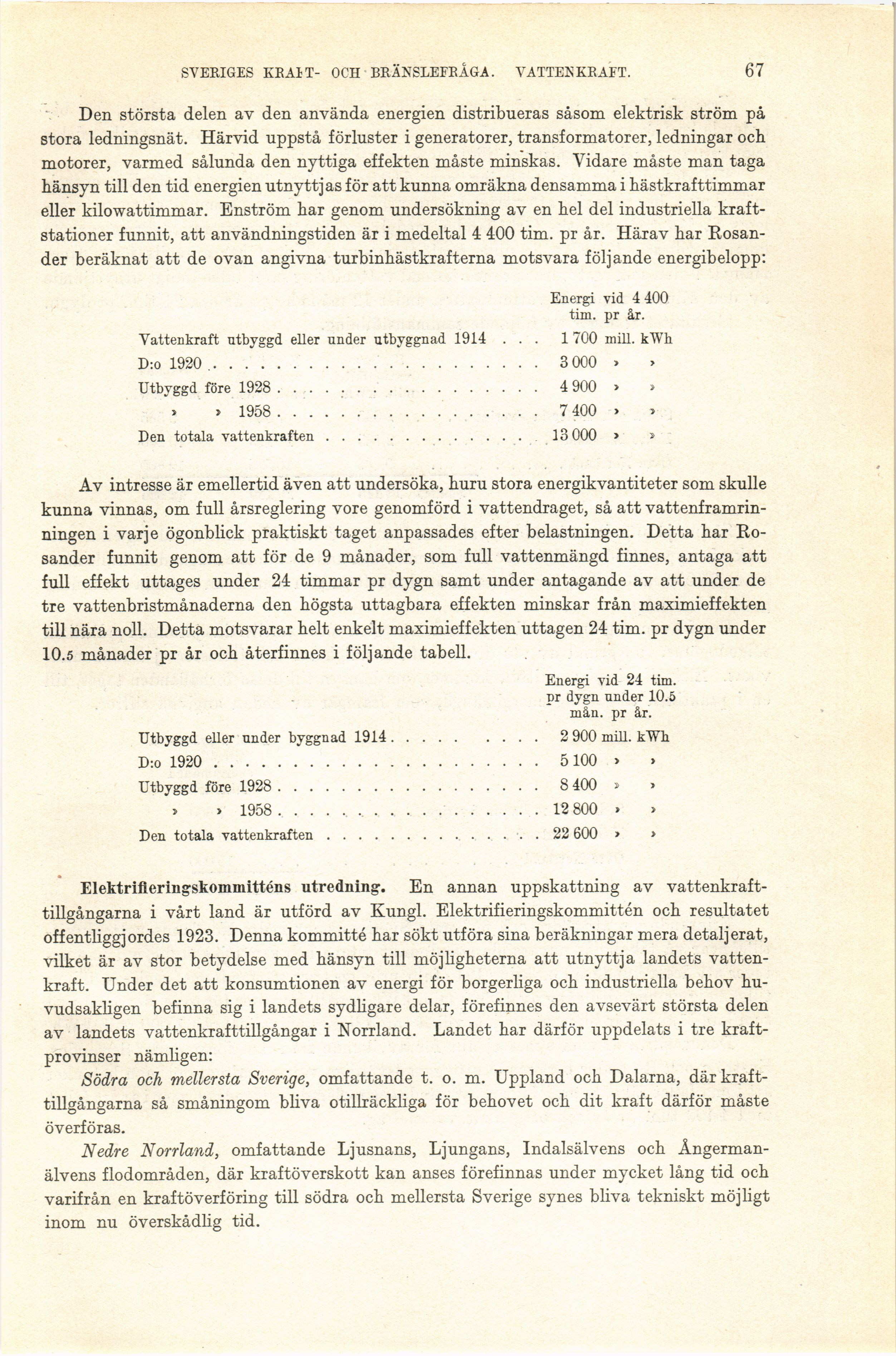 SVERIGES KR Al T- OCH BRÄNSLEFRÅGA. VATTENKRAFT. 67