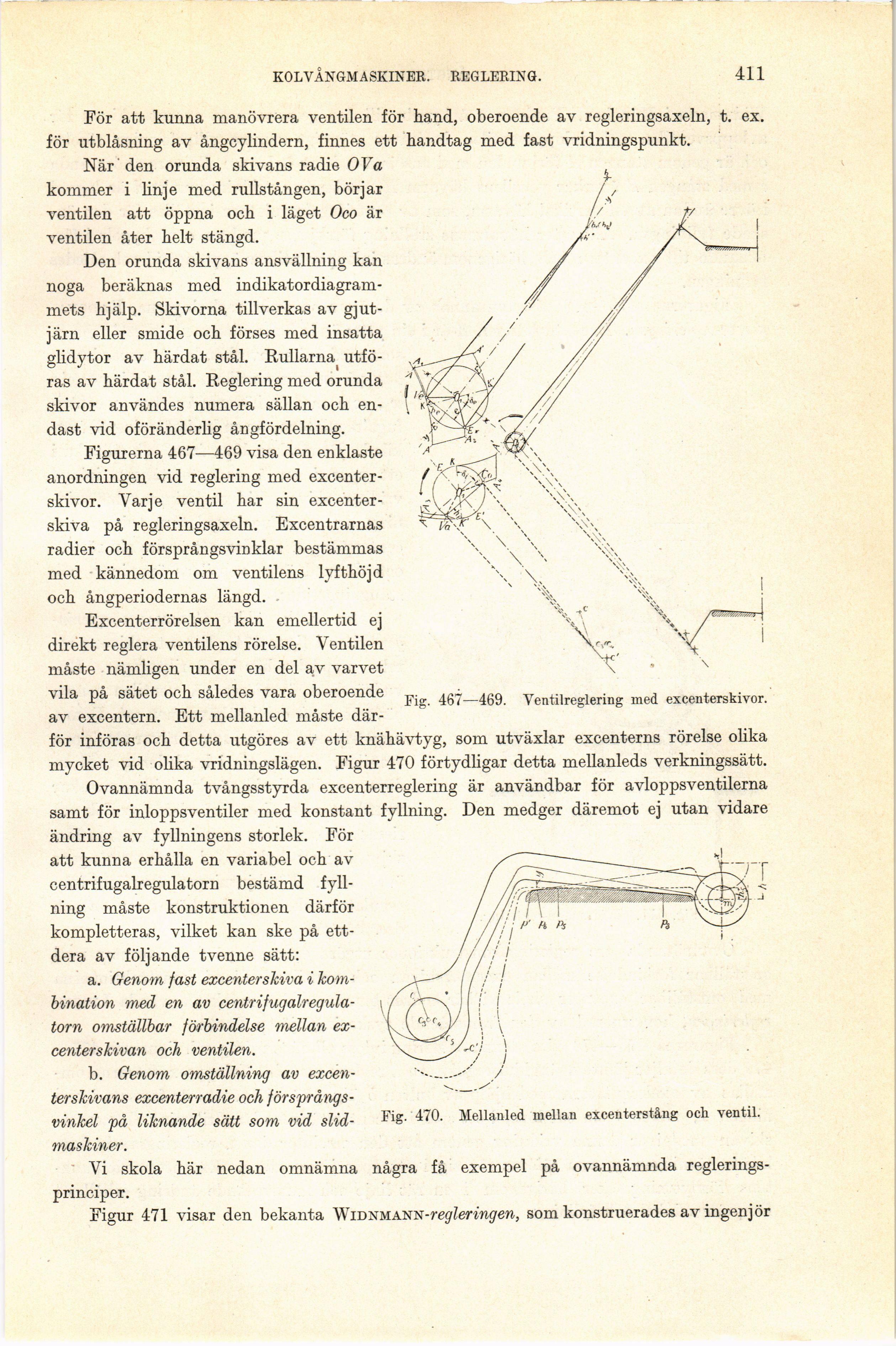 Fig. 467—469. Ventilreglering med excenterskivor.