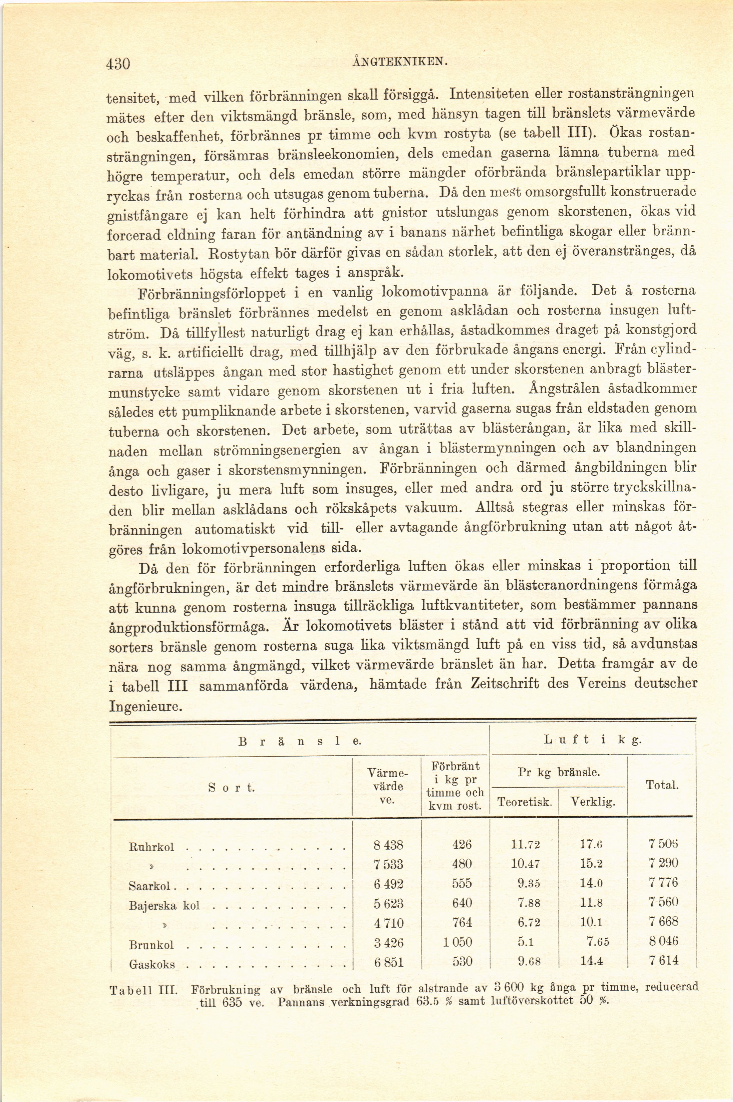 i tabell III sammanförda värdena, hämtade från Zeitschrift des Vereins deutscher