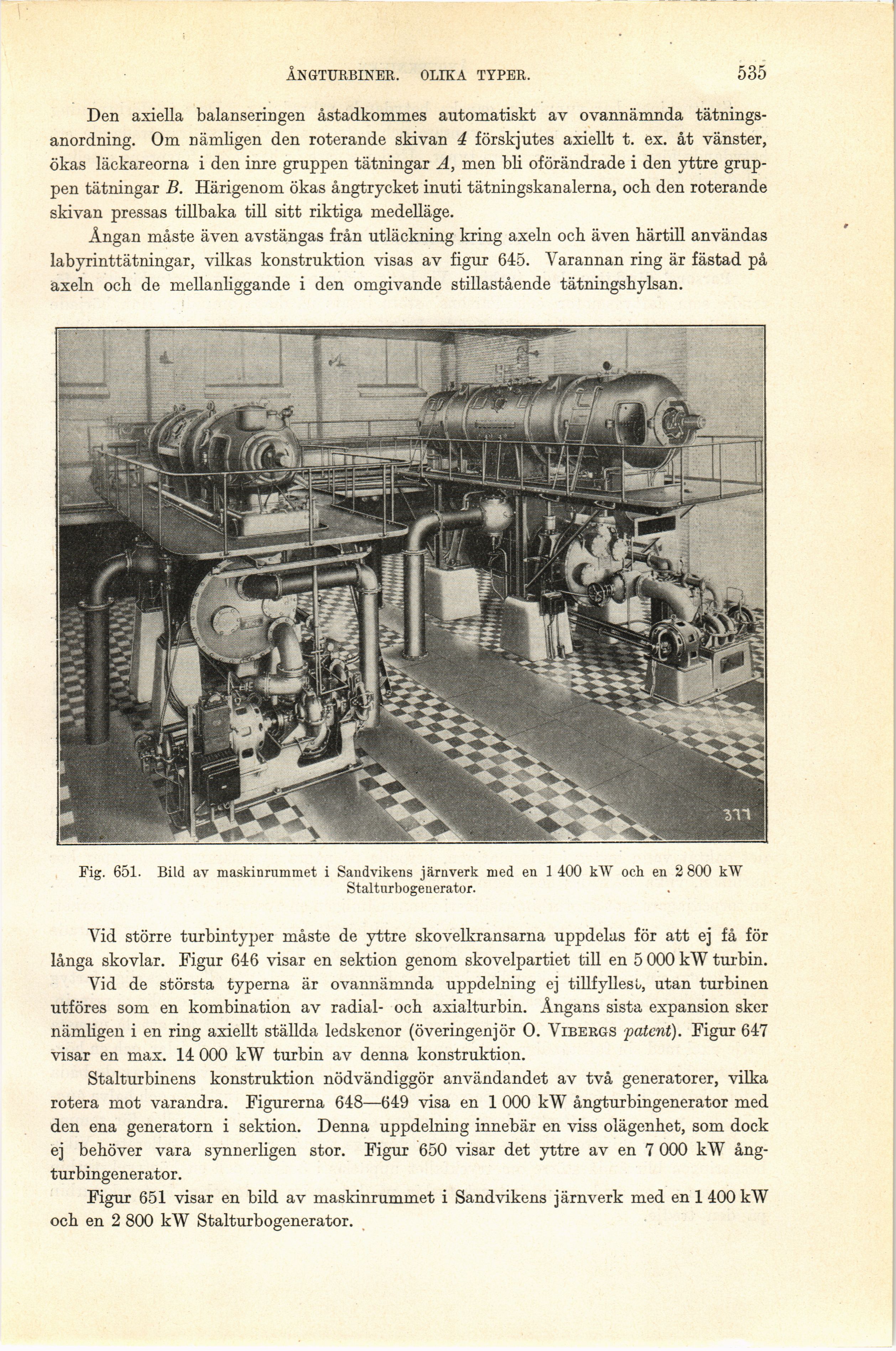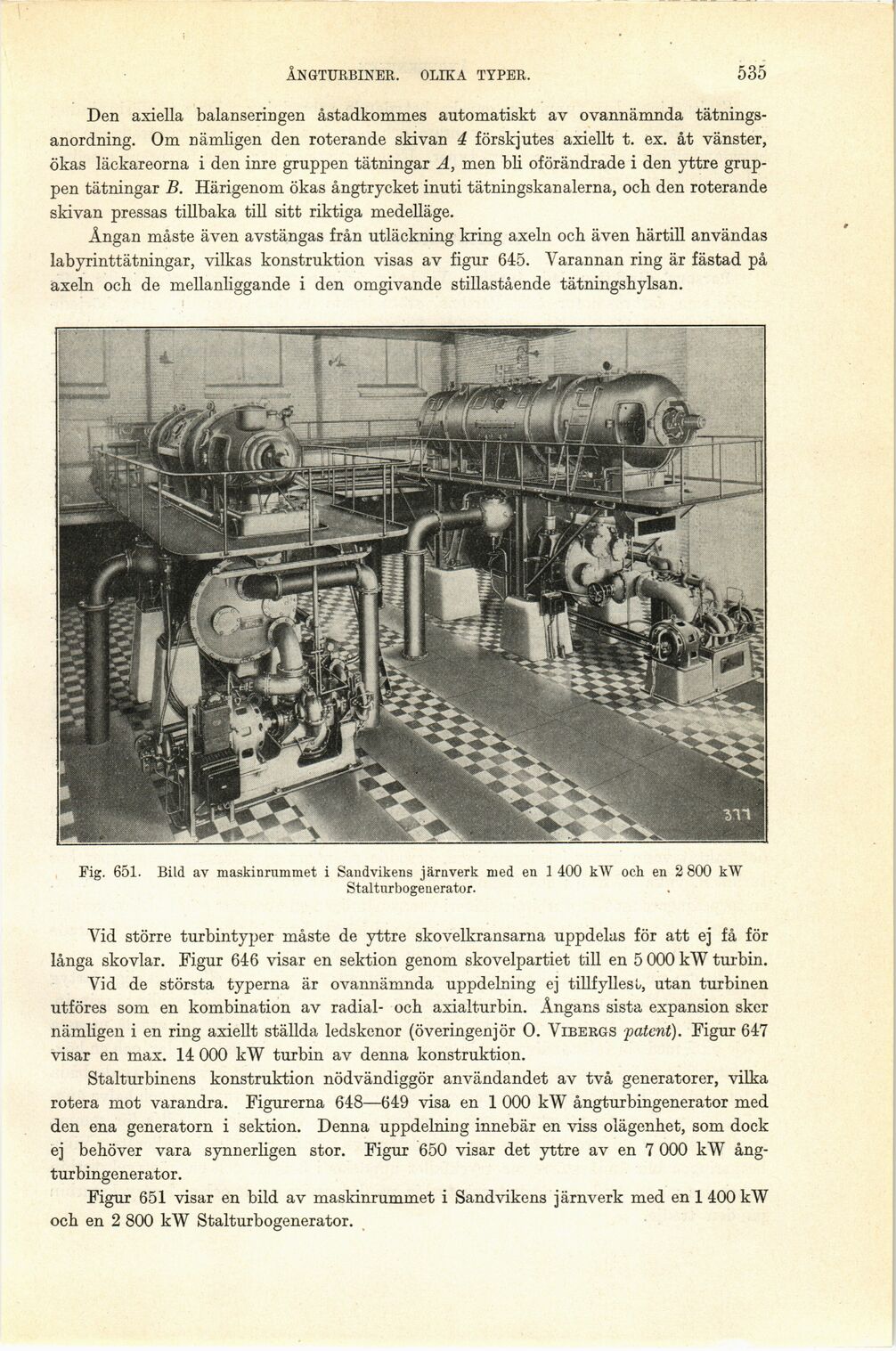 Figur 651 visar en bild av maskinrummet i Sandvikens järnverk med en 1 400 kW