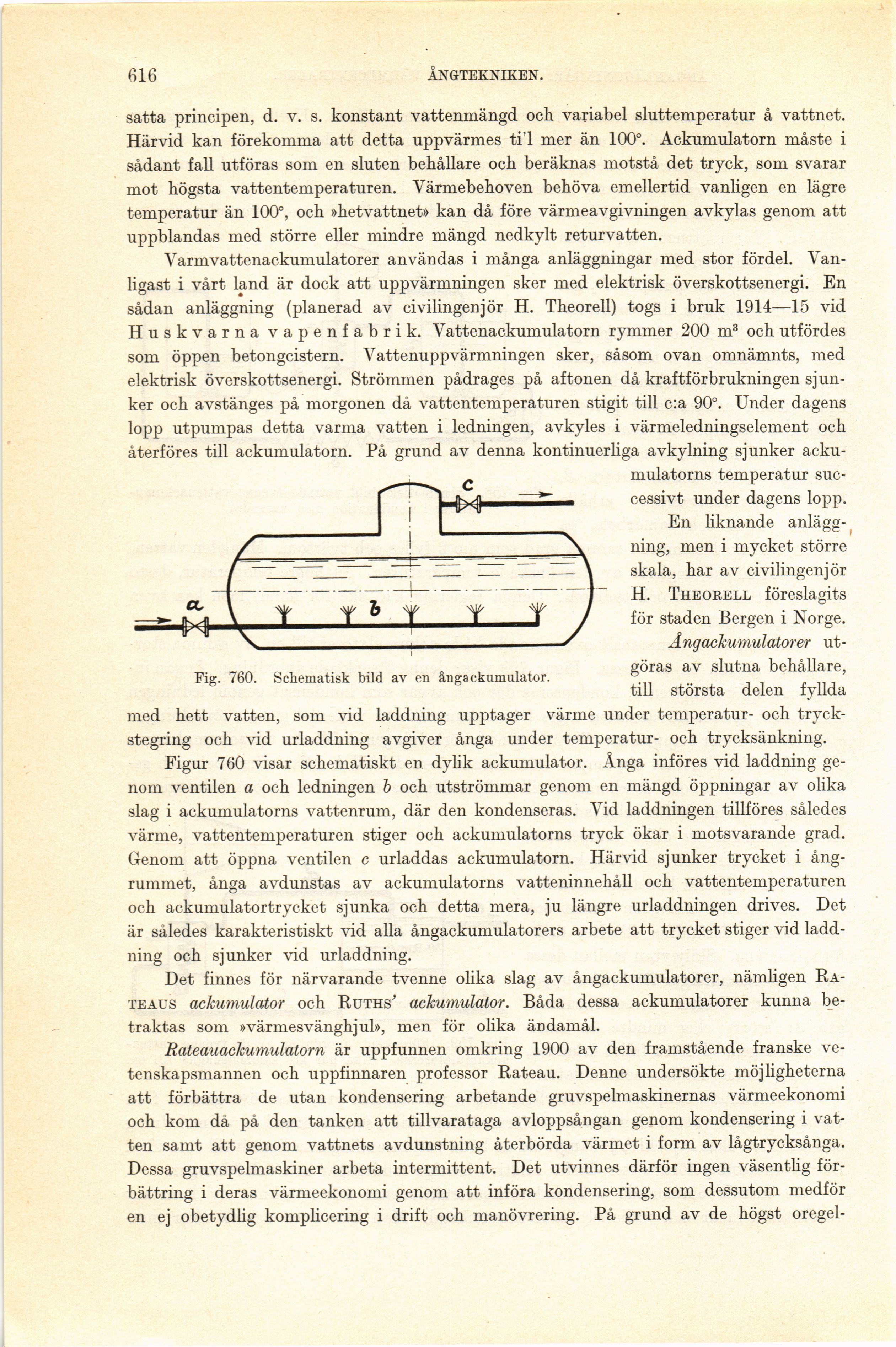 Figur 760 visar schematiskt en dylik ackumulator. Ånga införes vid laddning