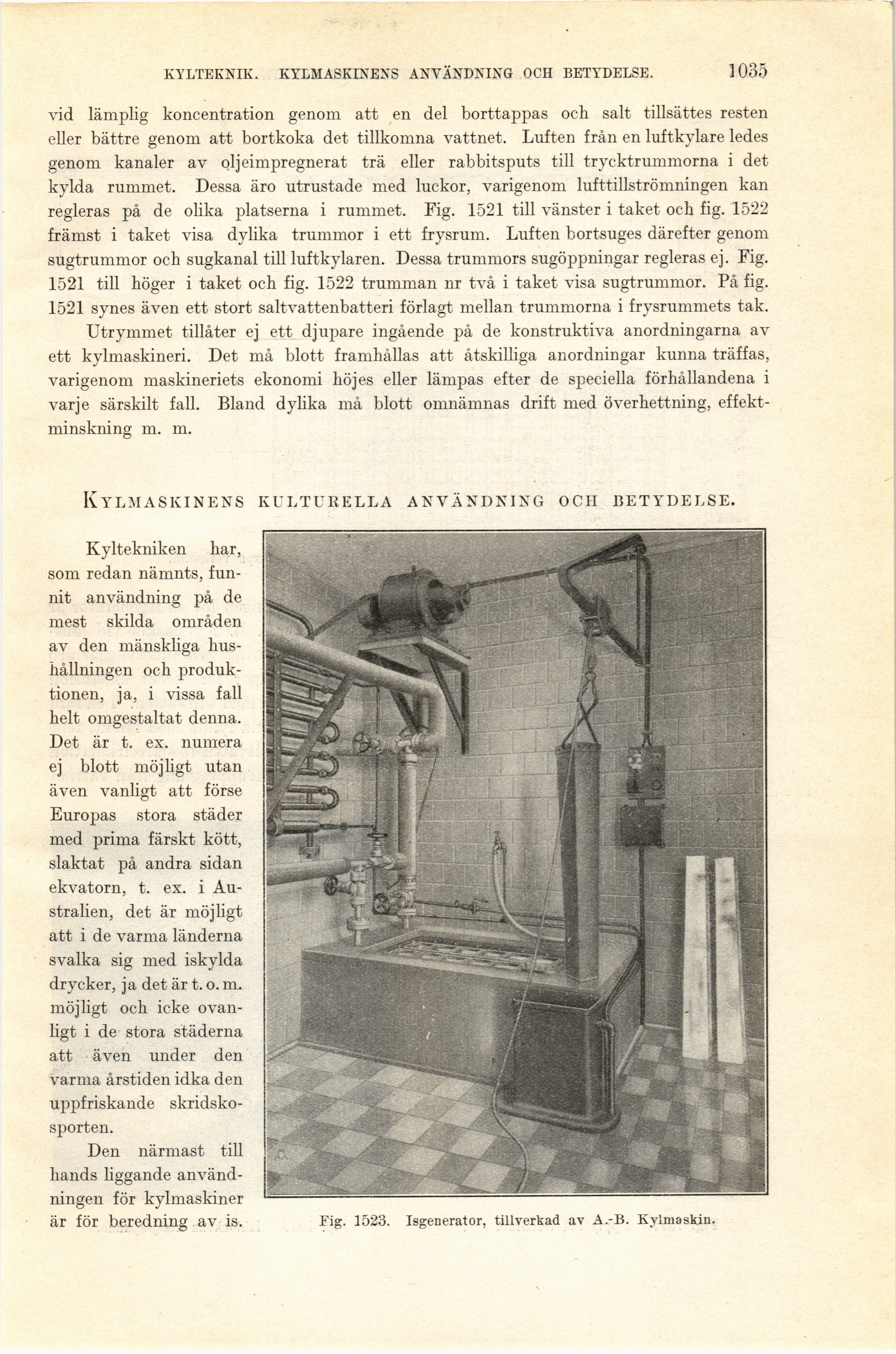 Full resolution (JPEG) - On this page / på denna sida - VI. De låga temperaturernas teknik, av Edvard Hubendick - Kylteknik - Kylmaskineriets detaljanordning - Kylmaskinens kulturella användning och betydelse