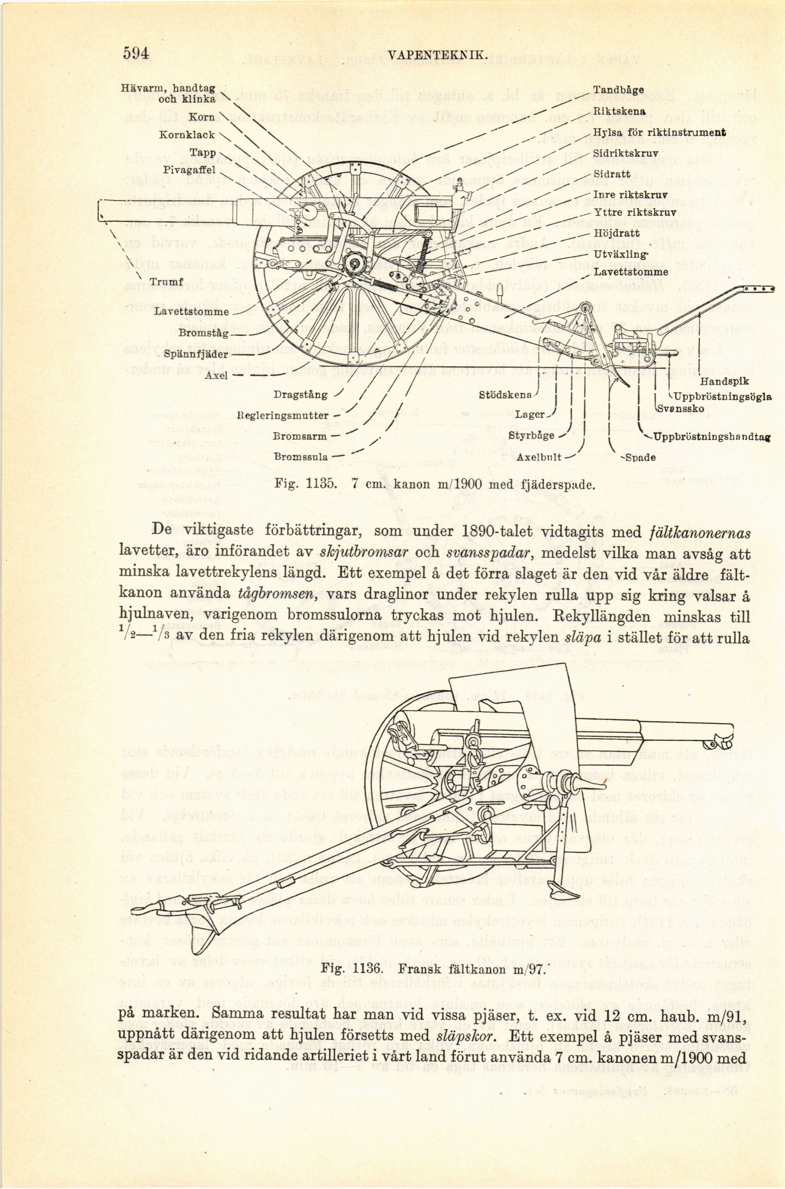 Fig. 1135. 7 cm. kanon m/1900 med fjäderspade.