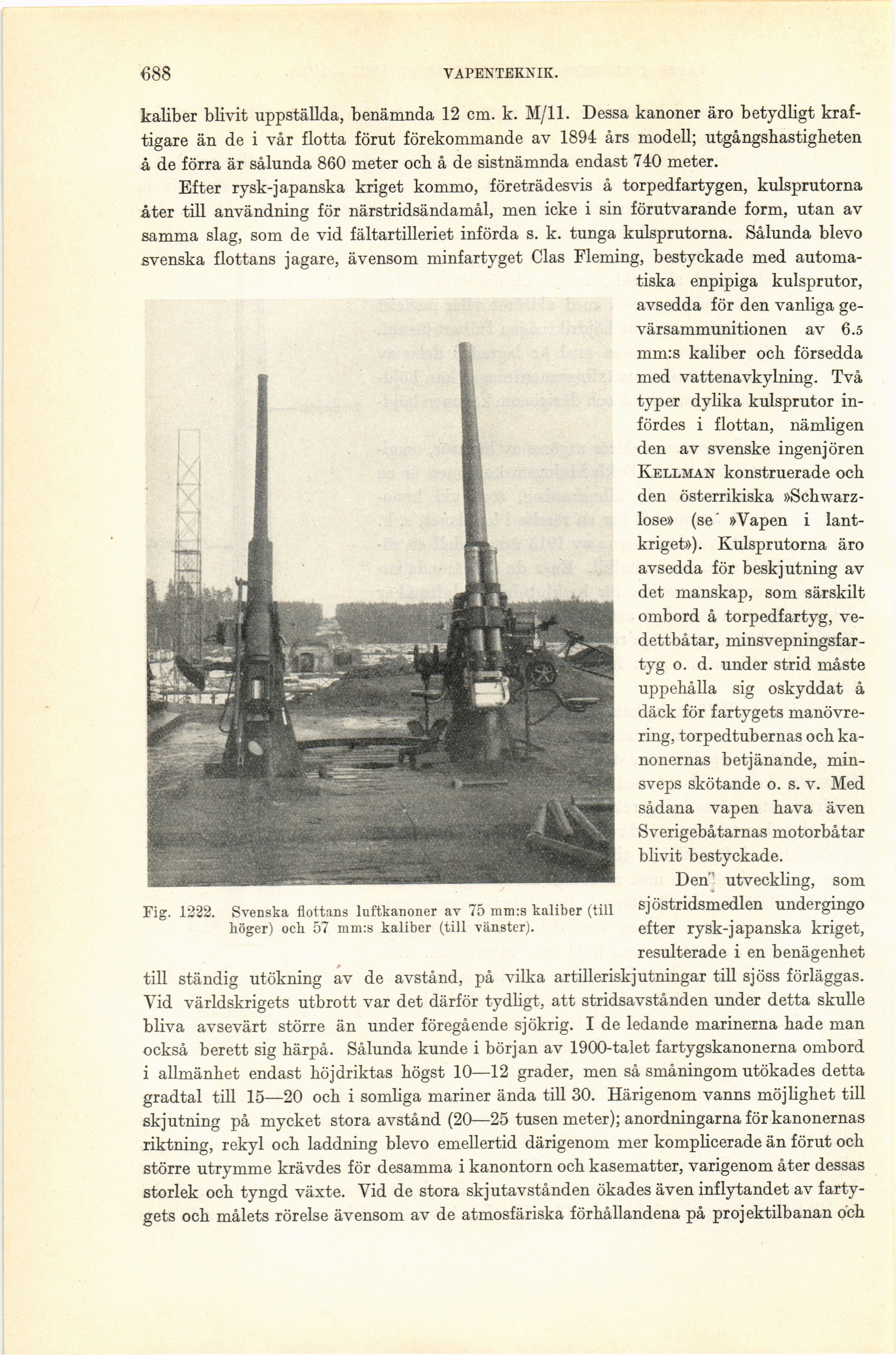 Fig. 1222. Svenska flottans luftkanoner av 75 mm:s kaliber (till