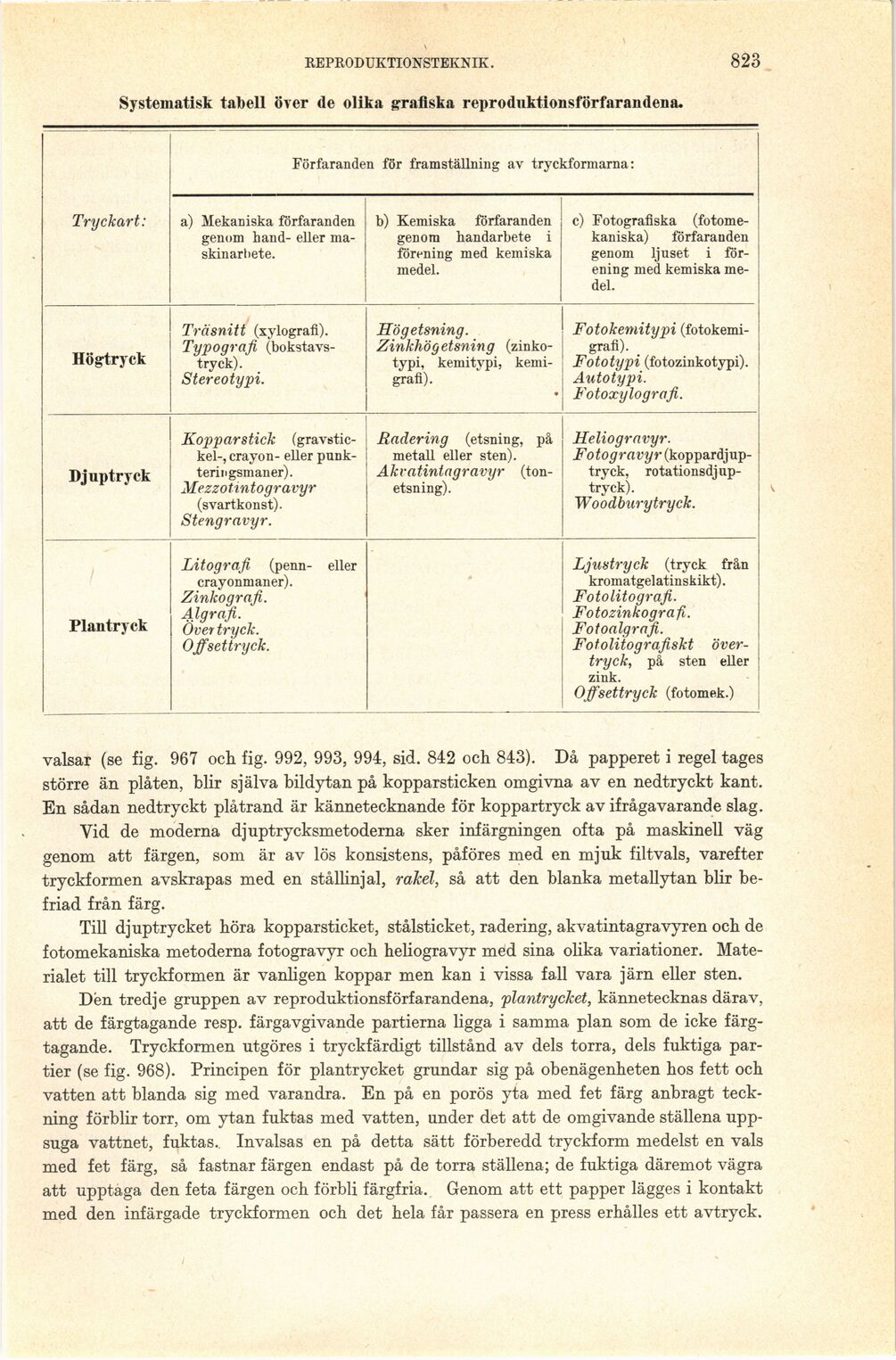 Systematisk tabell över de olika grafiska reproduktionsförfarandena.