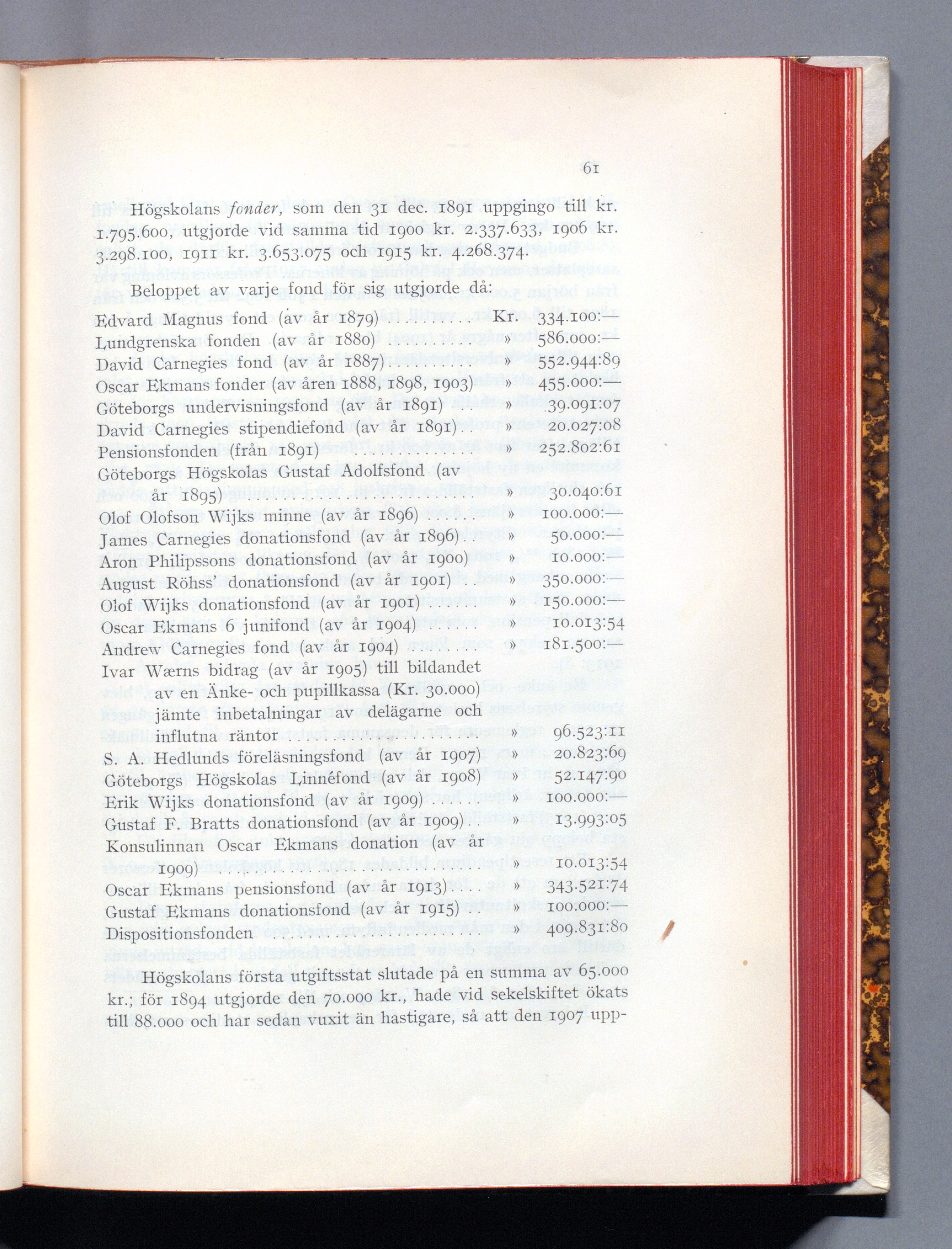 Full resolution (JPEG) - On this page / på denna sida - Översikt av Göteborgs högskolas uppkomst och dess utveckling 1891—1916 - Fonder m. m.