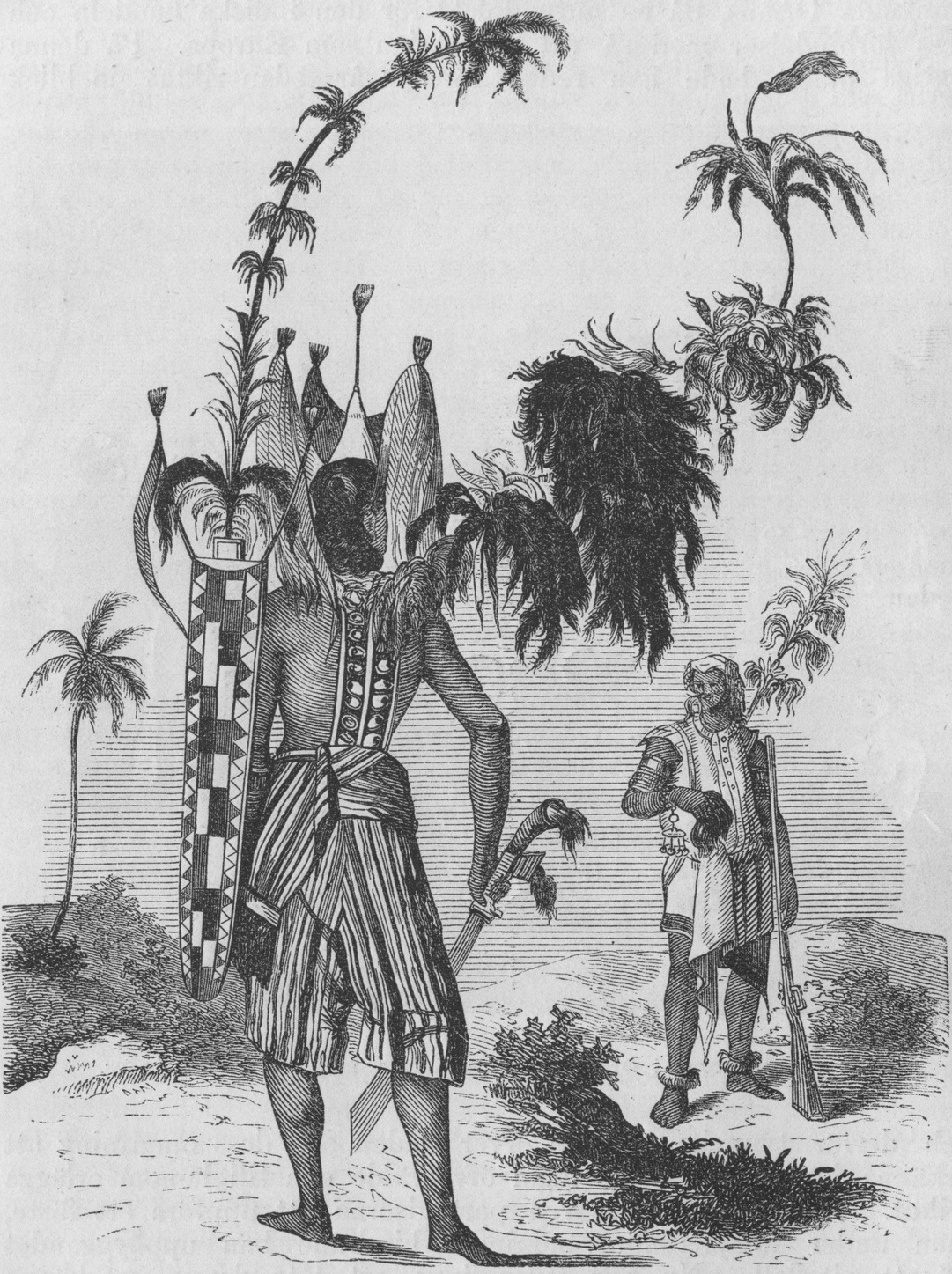| 38. Höfding från molukkiska arkipelagen i sin gamla krigsdrägt. (Efter den nederländska kommissionens stora verk). |