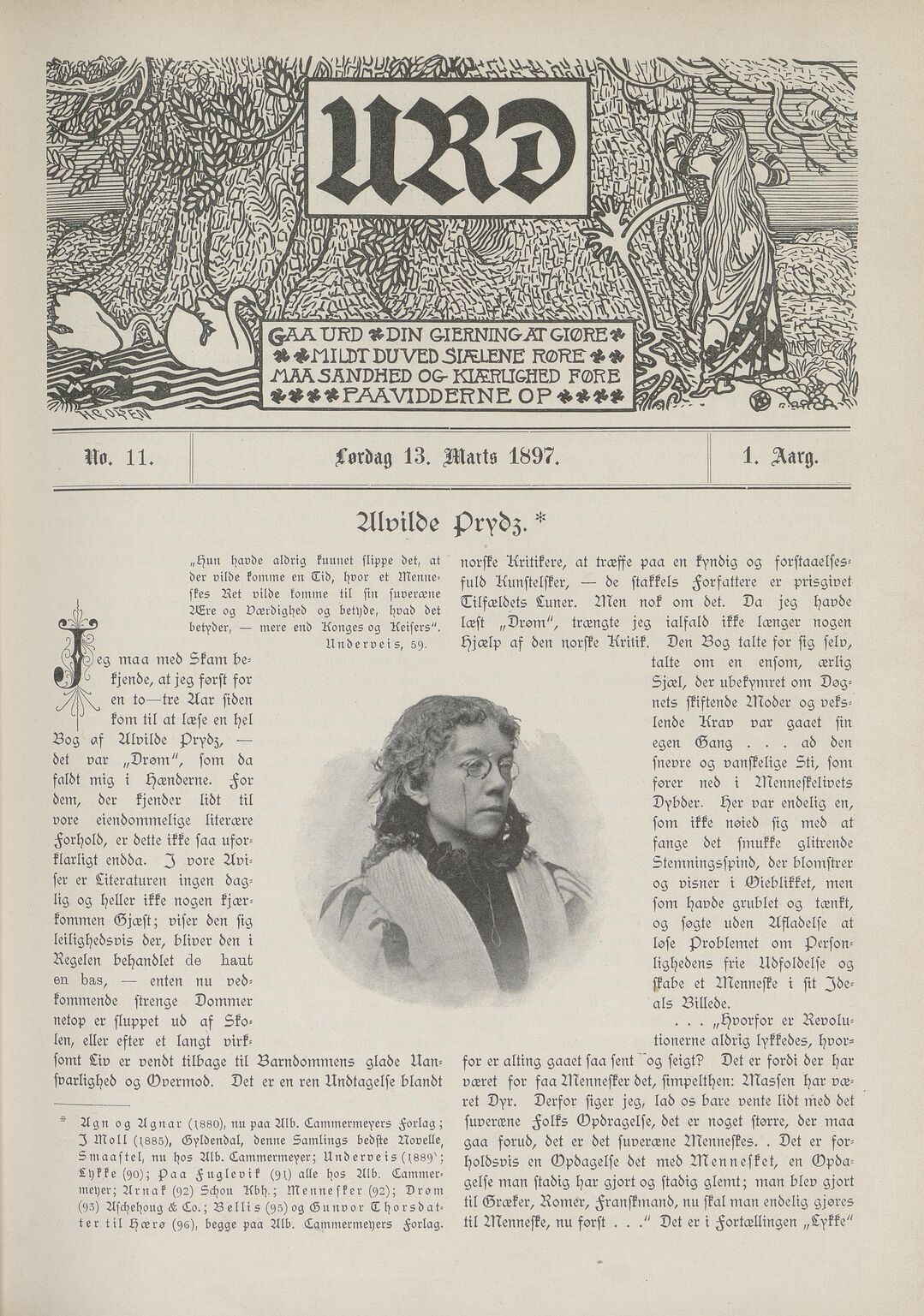 Full resolution (JPEG) - On this page / på denna sida - No. 11. Lørdag 13. Marts 1897 - Carl Nærup: Alvilde Prydz (med Billede)